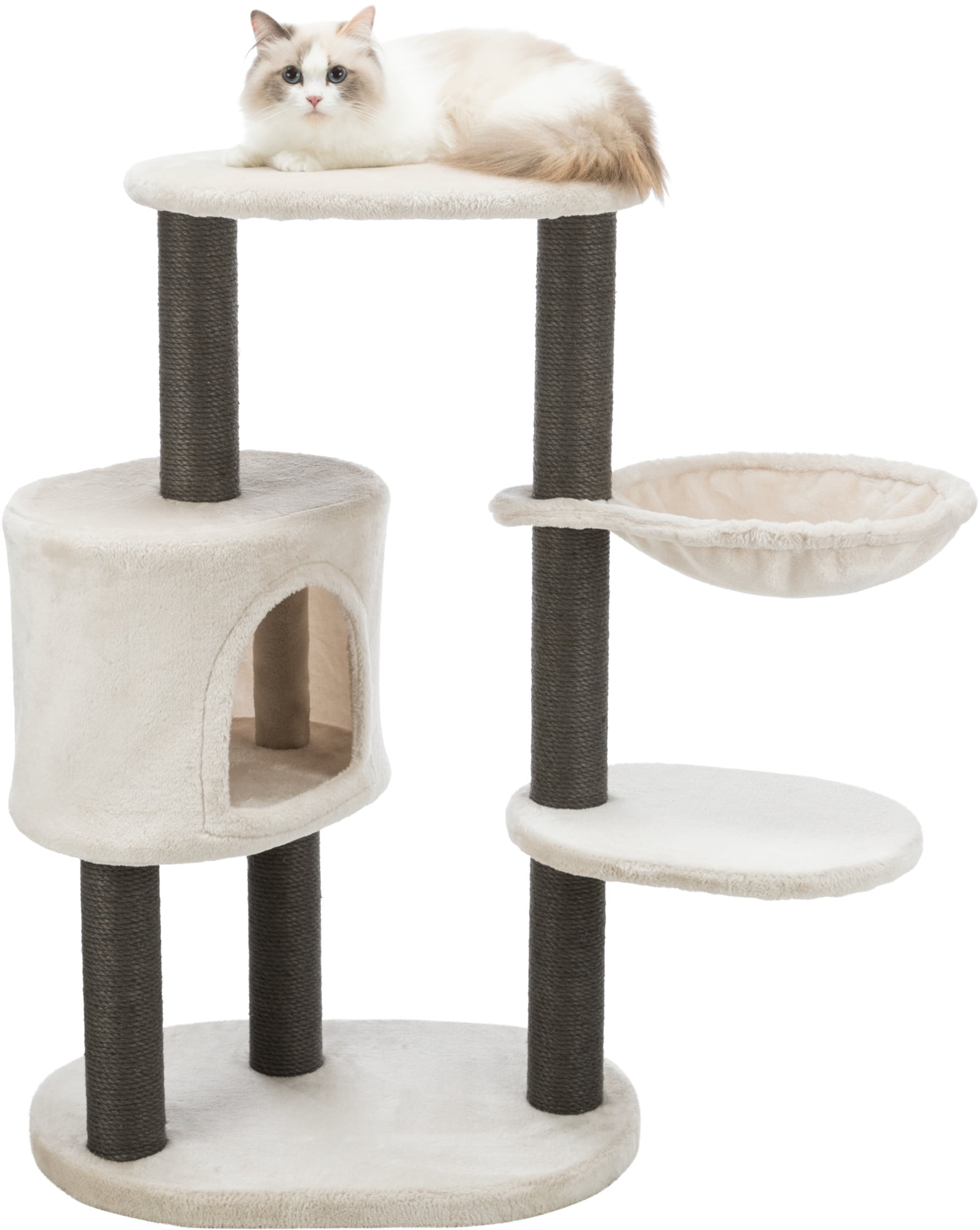 TRIXIE Moriles Gray Cat Tower with Scratching Posts, Condo, Hammock, Padded Platform