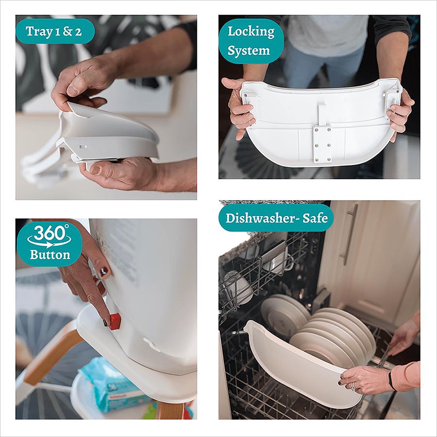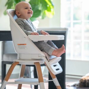 – INNOVATIVE, 360-DEGREE DESIGN Loved by parents, with a push of a button, this high chair s swivel design allows you to position your little one as needed for easy feeding, both with you or independently and allows you to always have eyes on your child.
