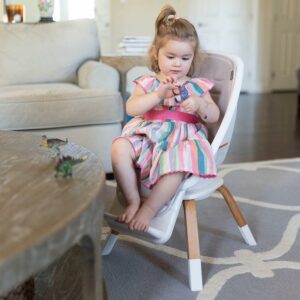 Raise your little one up to tabletop height with ease, safety, and peace of mind. The TruBliss 2-in-1 Turn-A-Tot High Chair elevates family time with it’s 360-degree design, giving parents the ability to always have baby within arm’s reach. With both an incredibly sturdy wooden design and TruBliss’s 5-point harness system, the 2-in-1 Turn-A-Tot High Chair ensures safety for your little one. The adjustable high chair height, 2-position foot rest, removable dishwasher-safe tray, and wipe clean pad further the 2-in-1 Turn-A-Tot s outstanding versatility.