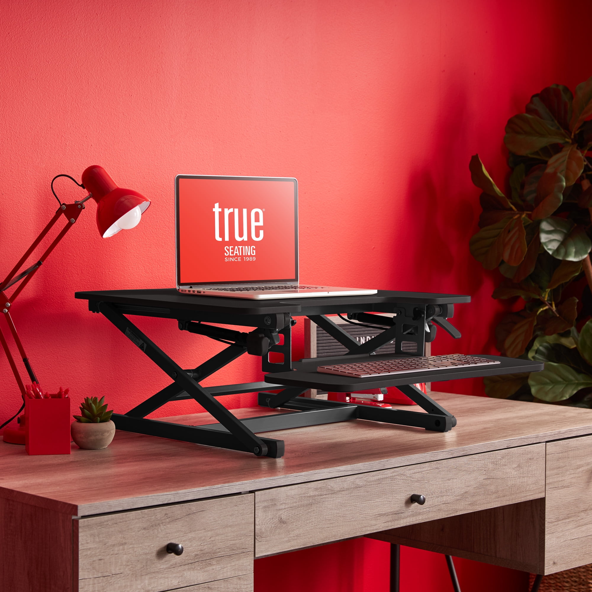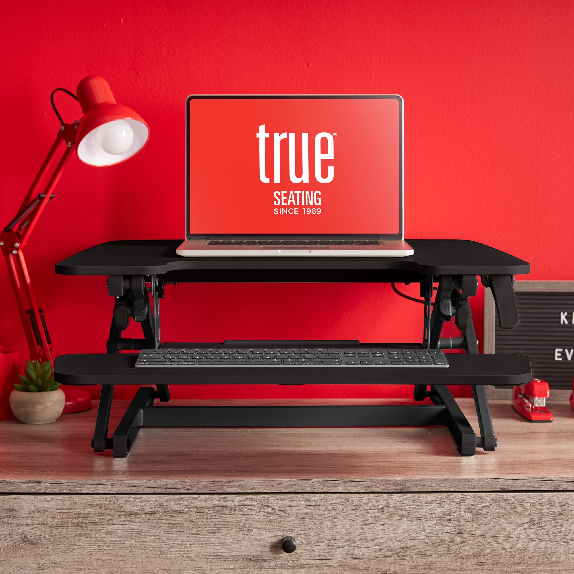 True Seating Ergo 27″ Height Adjustable Standing Desk Converter, Black