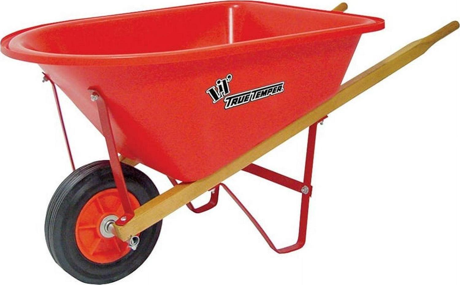 Lil’ True Temper, Kid’s Size Wheelbarrow, Corrosion Proof Red Poly Tray, Durable, Solid Rubber Tire Won’t Go Flat & Never Needs Air, Seal Coated, Real Hardwood Handles.