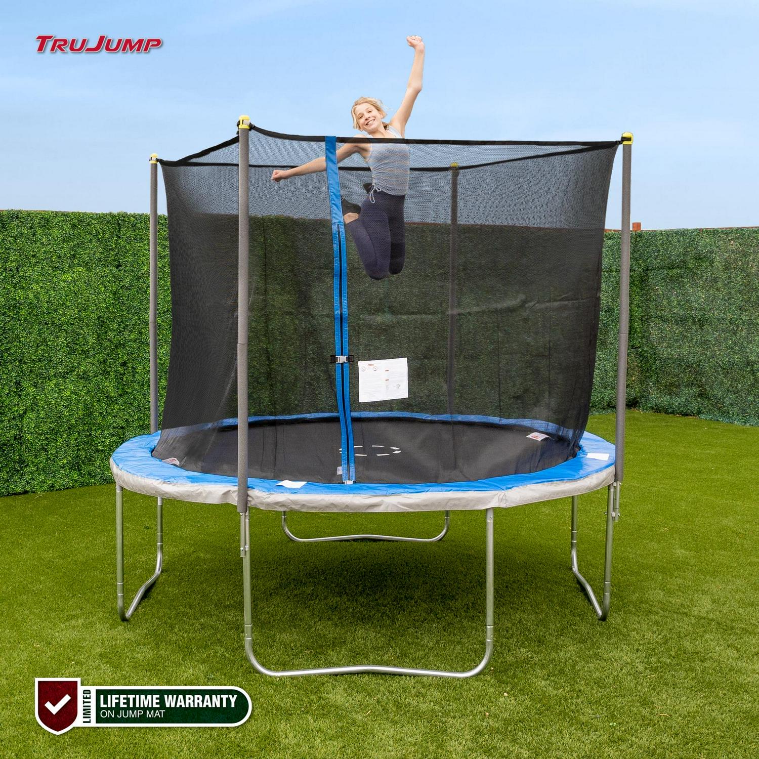 TruJump 10′ Round Trampoline with Classic Steel Enclosure Combo and Jump Mat with Lifetime Warranty