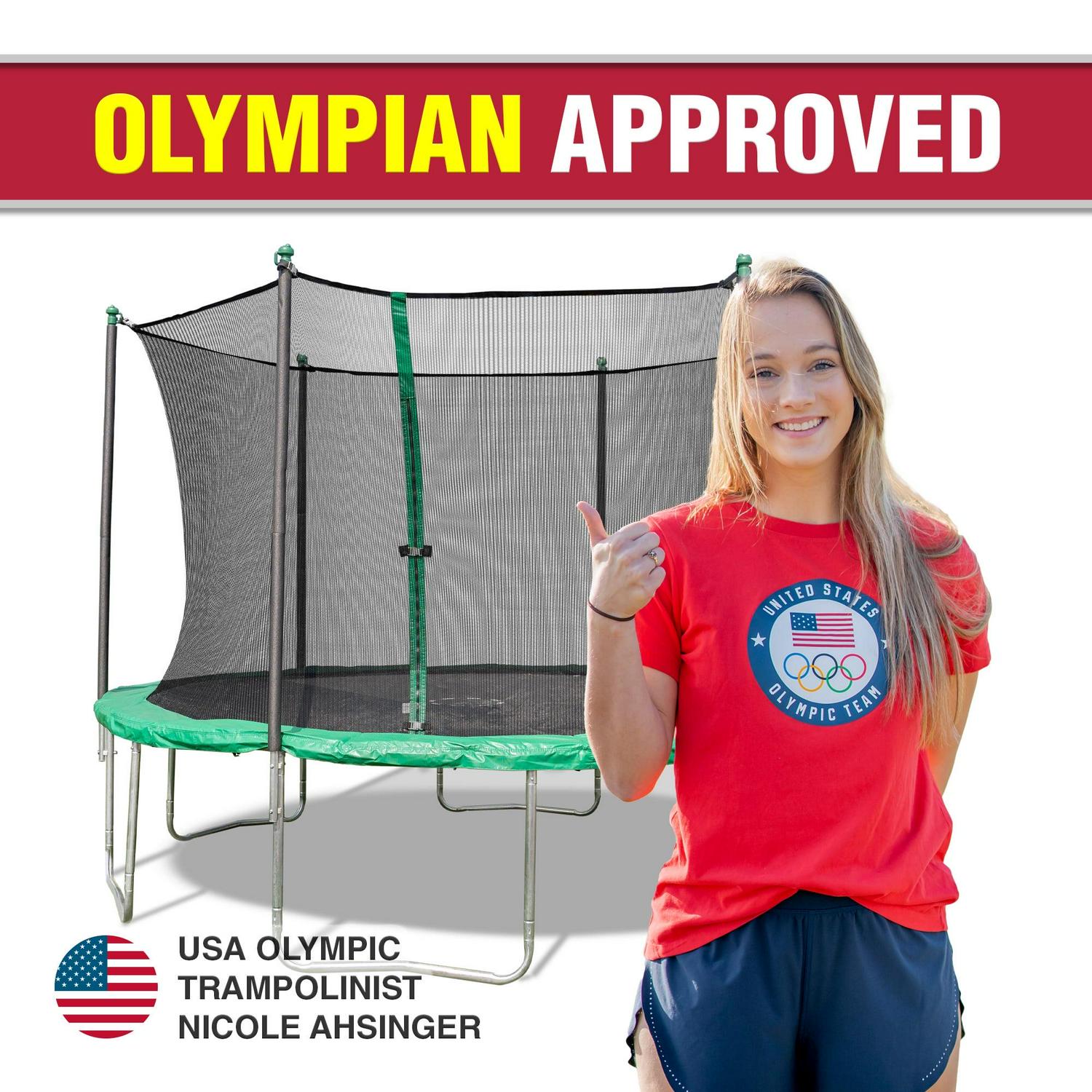 TruJump 12′ Trampoline with Safety Enclosure and Jump Mat with Lifetime Warranty (Green)
