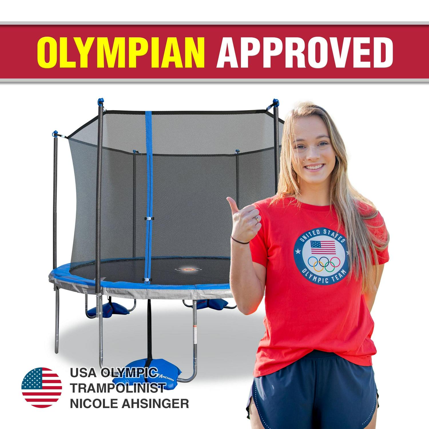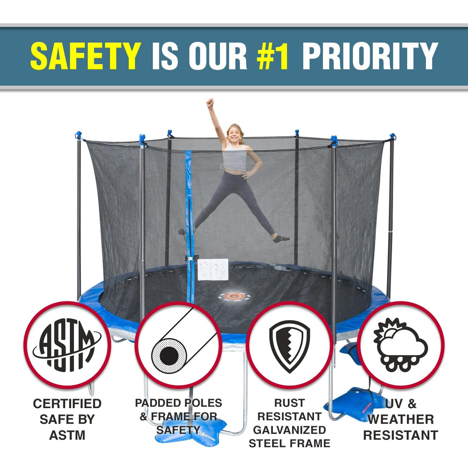Trujump 12′ Trampoline, with Safety Enclosure and Spin-N-Light, Blue