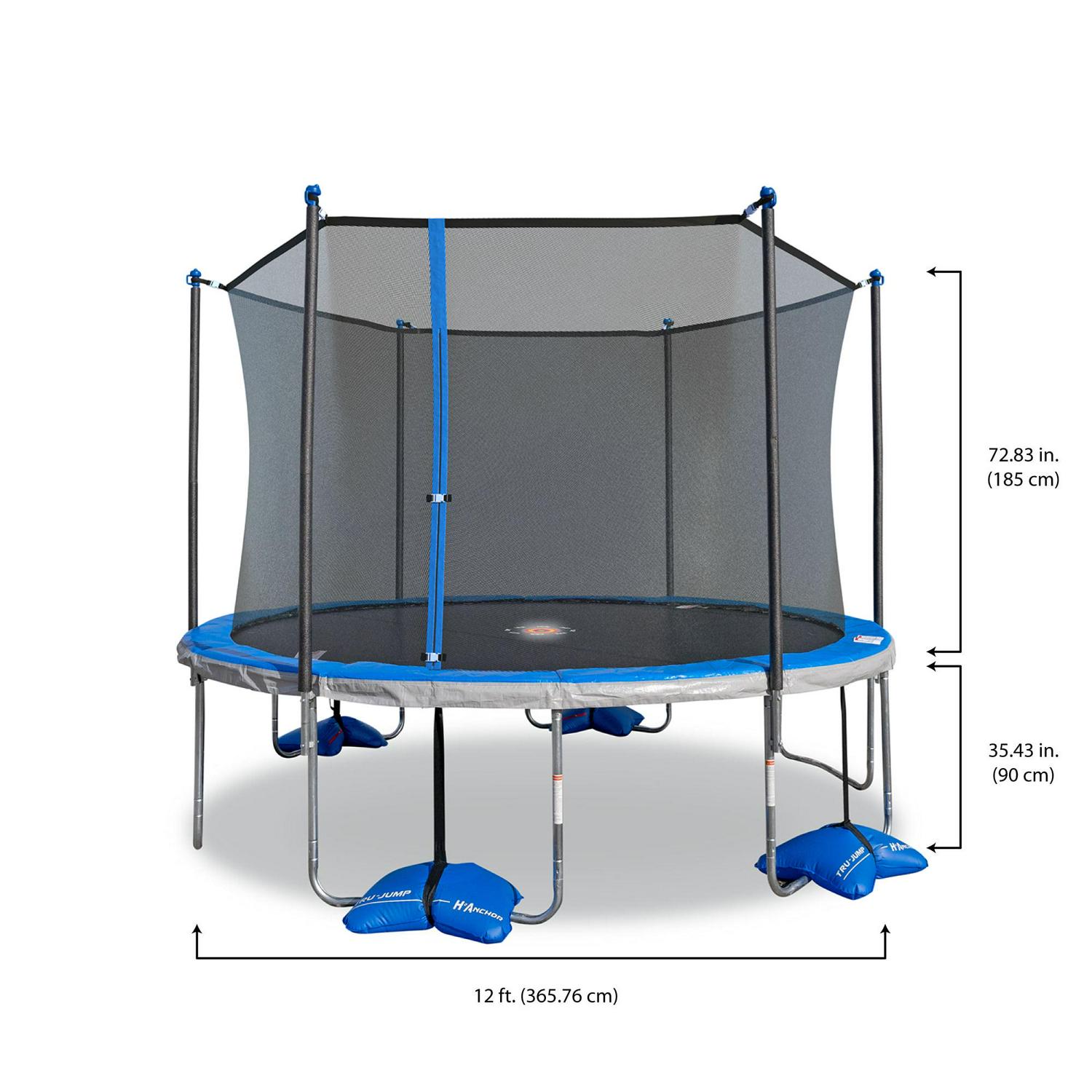 TruJump wanted to design an all-in-one trampoline that your whole family will love and have fun! The all new TruJump12ft trampoline and enclosure combo is designed for a mid-size yard and came with a new innovative anchor system that allows the trampoline to be anchored in any ground condition to prevent strong winds from moving your trampoline. The spinner flash light kit is easy to install without any tool underneath the jump mat. The colored lights flash and spin as kids jump. TruJump trampoline is all about safety and encouraging your kids to go out and exercise more! Powered by safety 6-pole enclosure, kids can soar to a new height of backyard fun and keep safe inside the trampoline. This trampoline features 220 lb weight capacity with an durable, UV resistant trampoline park quality jump mat built on a thick walled and double galvanized steel frame. This 12ft trampoline can handle any trampoline exercise routine in your backyard.