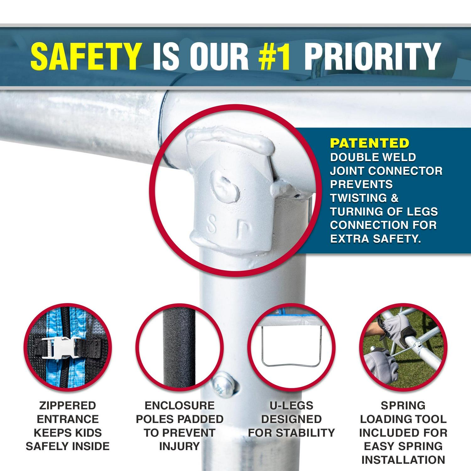 - Foam padded spring cover to prevent impact, contact and entanglement