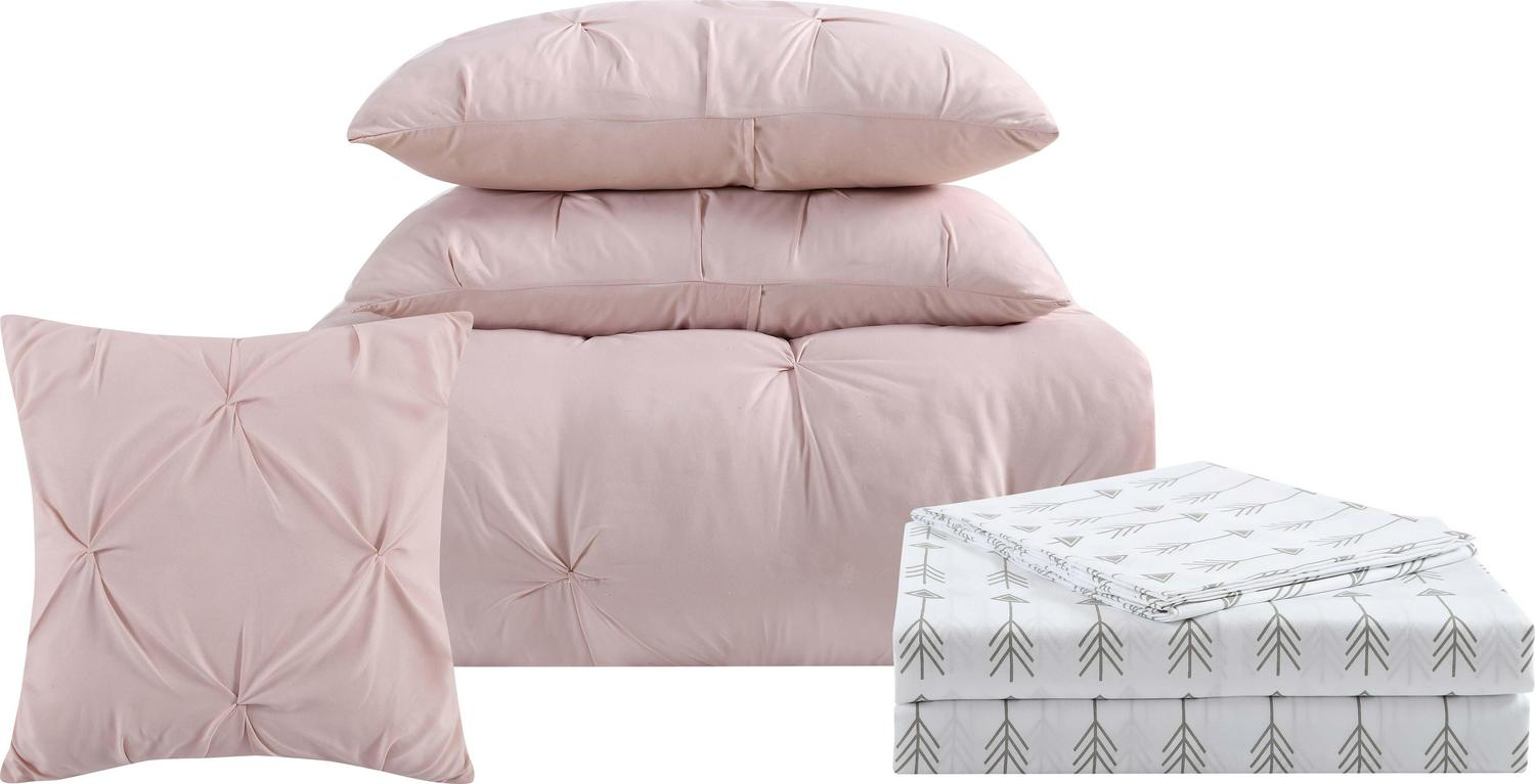 Truly Soft Arrow Pleated Blush Twin Bed in a Bag