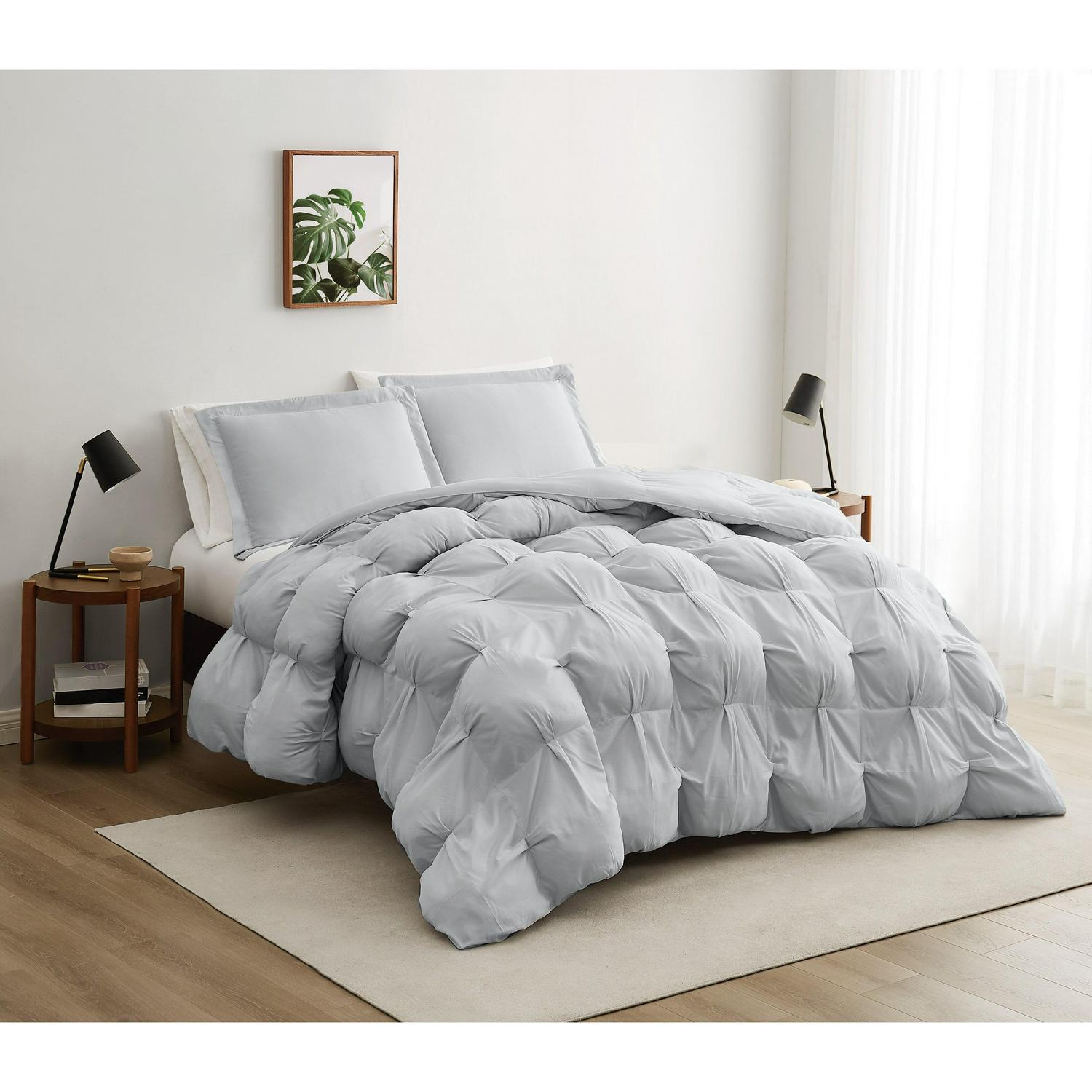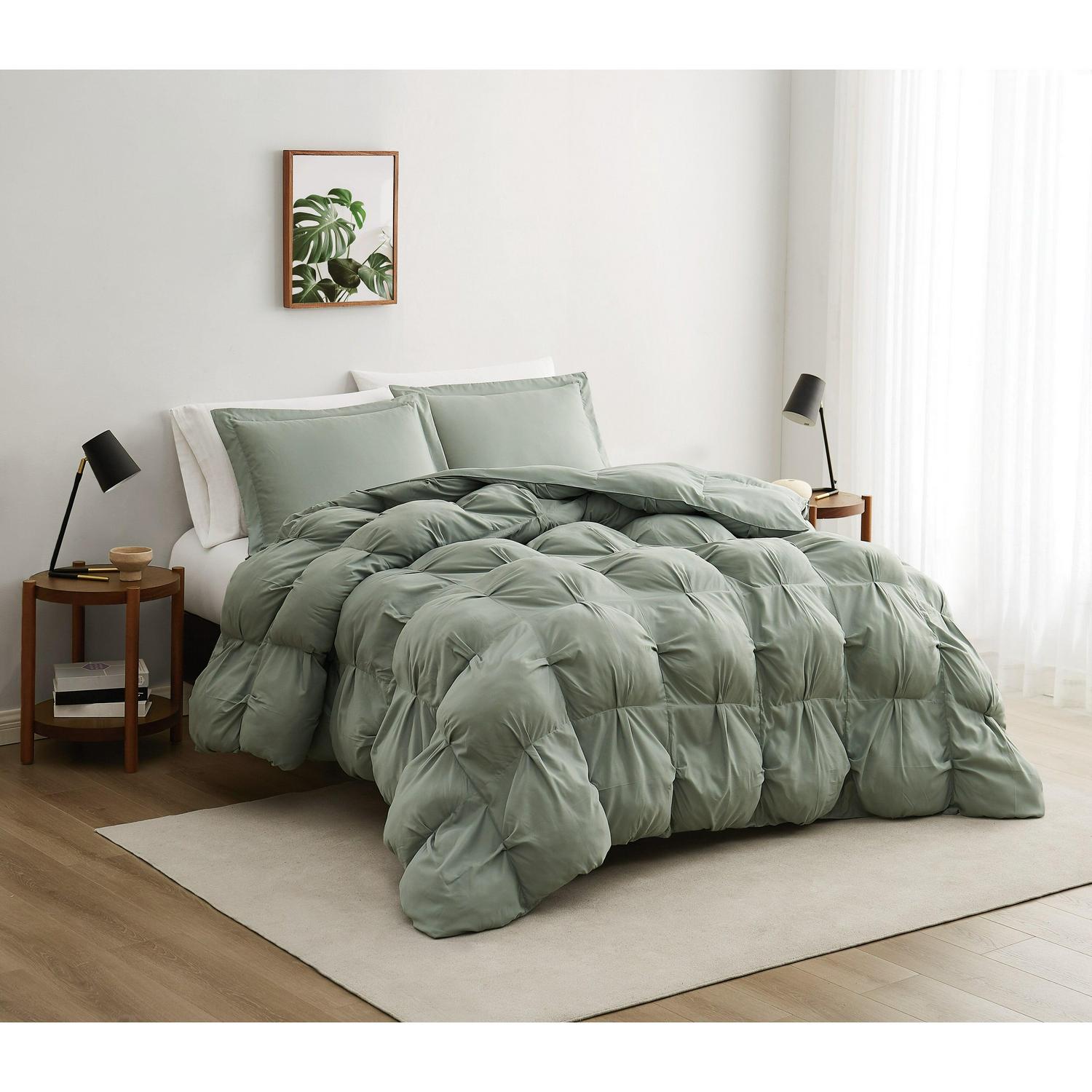 Experience the light and airy feeling of a cloud, combining the insulated comfort of a puffer jacket with our Cloud Puffer Comforter Set by Truly Soft. The microfiber fabric is extremely soft and stitched with a gentle kissing pleat technique to offer loft and intrigue to the solid colored fabric. Luxuriously overfilled, a 300 grams per square meter polyester fill is added within the comforter to provide the cloud-like feel and complete the puffed design. The sham(s) have a solid face with a 2-inch flange that brings focus back to this stunning comforter. This comforter set is available in a variety of subtle and trendy colors, white, grey, beige and green. Fabric is a pleated 100% microfiber with a 90 GSM. Filled with 100% polyester and a fill weight of 300 GSM. This item is machine washable, but please be sure to use appropriate sized machinery to avoid any excess wear on the items. This item is manufactured and imported from China. Set includes: one comforter 68 inches wide by 90 inches long with one standard sham 26 inches wide by 20 inches tall.