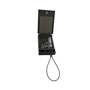 Weighing less than 3 lbs., this lockable welded steel storage box can be used to secure a firearm and protect valuables while carrying it by hand between locations, during travel, inside a vehicle, home or office. Keyless entry is provided by Tuffy’s 3 digit combination lock with a two-point steel cam for added security. The included 2 ft. long, 2000 pound test, steel security cable secures the safe to any sturdy mounting surface by attaching to the 1/8 inch steel security cable anchor point. The inside is lined with low-density foam to protect the contents, while compression bumpers keep the lid vibration-free when closed.