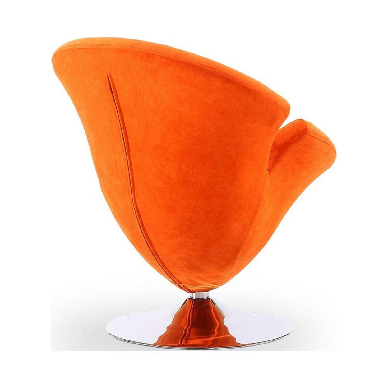 Tulip Orange and Polished Chrome Velvet Swivel Accent Chair Bring botanical beauty to your space. Eye-catchingly sculptural, this dreamily beautiful accent chair will inspire curiosity and delight from everyone. Its delicate contours form the shape of a blossom gently unfolding, offering an irresistible invitation to sit.