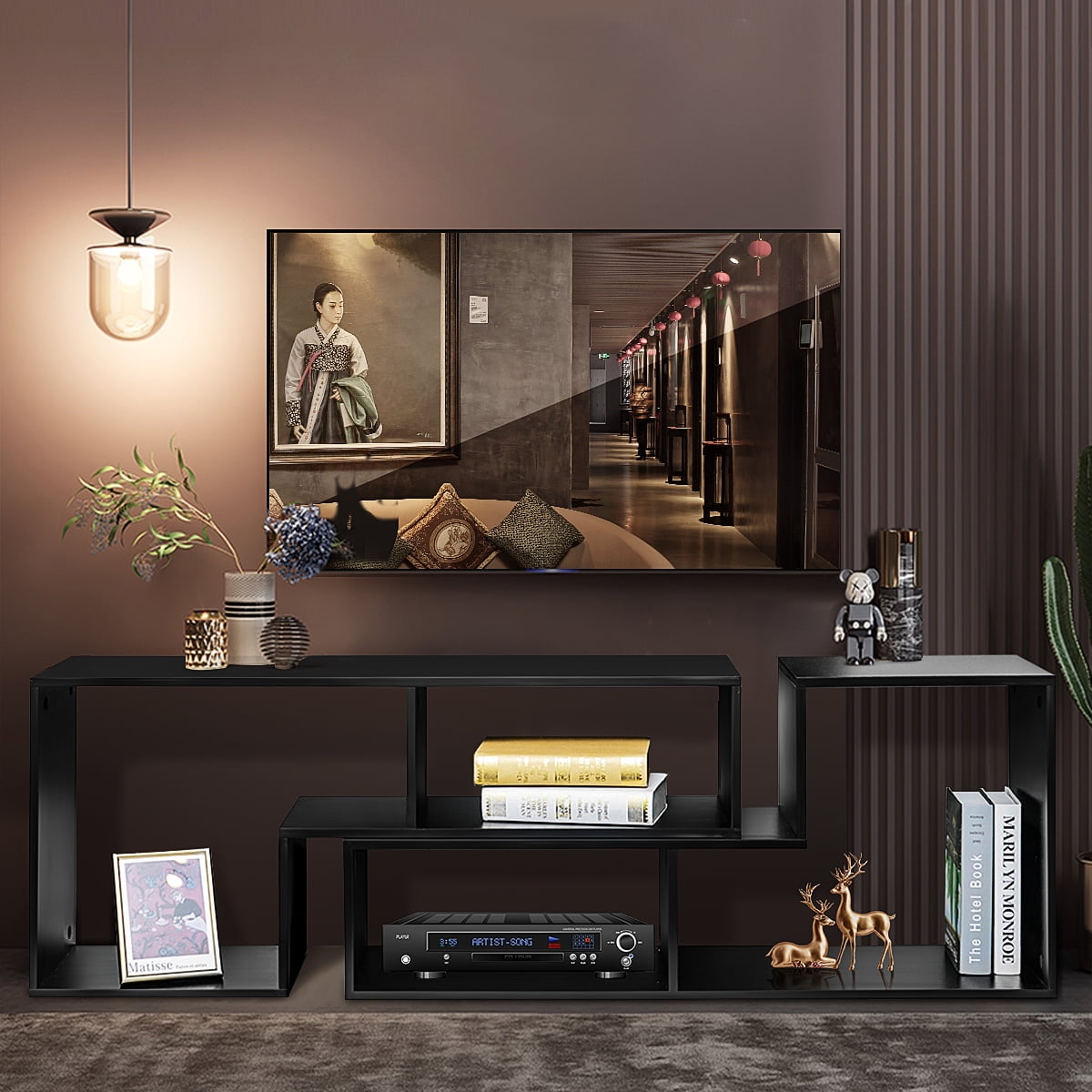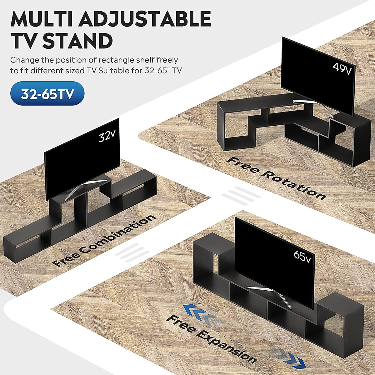 Home / Home, Garden &Tools / TV Stand for 40” – 80” TVs DIY Convertible Storage Bookcase Shelf Modern Entertainment Center Black for TVs Media Console TV Cabinet for Video Gaming Movies