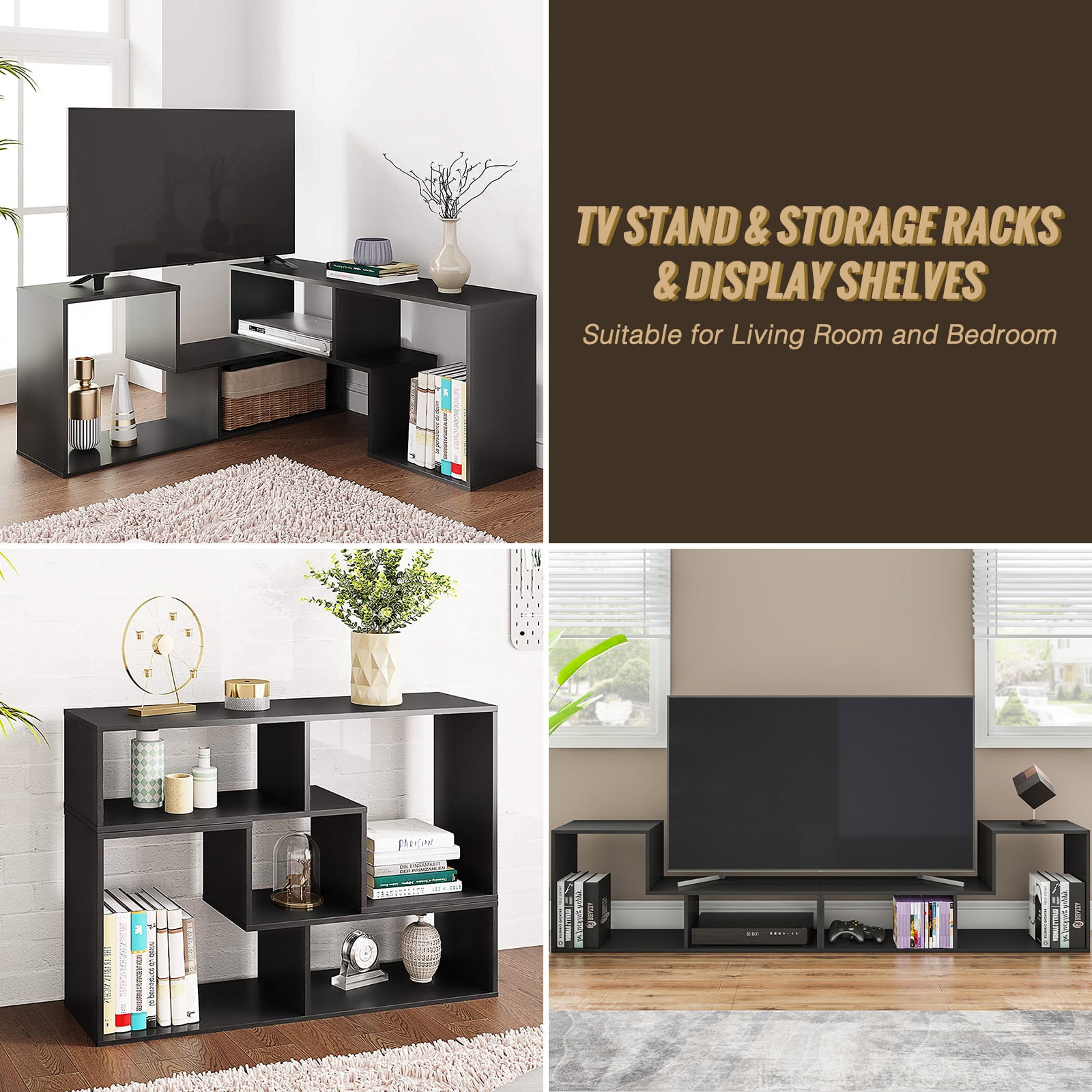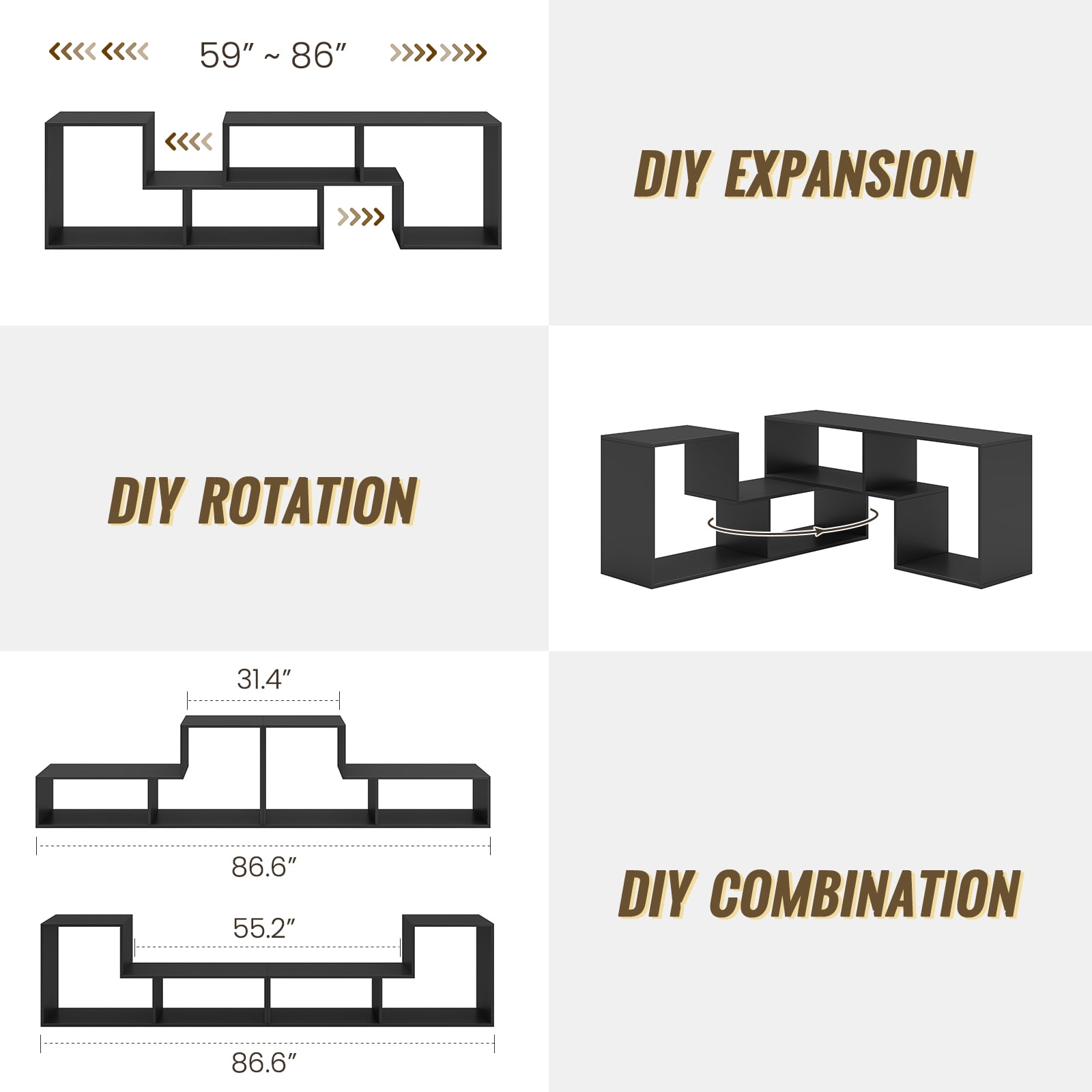 TV Stand for 40” – 80” TVs DIY Convertible Storage Bookcase Shelf Modern Entertainment Center Black for TVs Media Console TV Cabinet for Video Gaming Movies