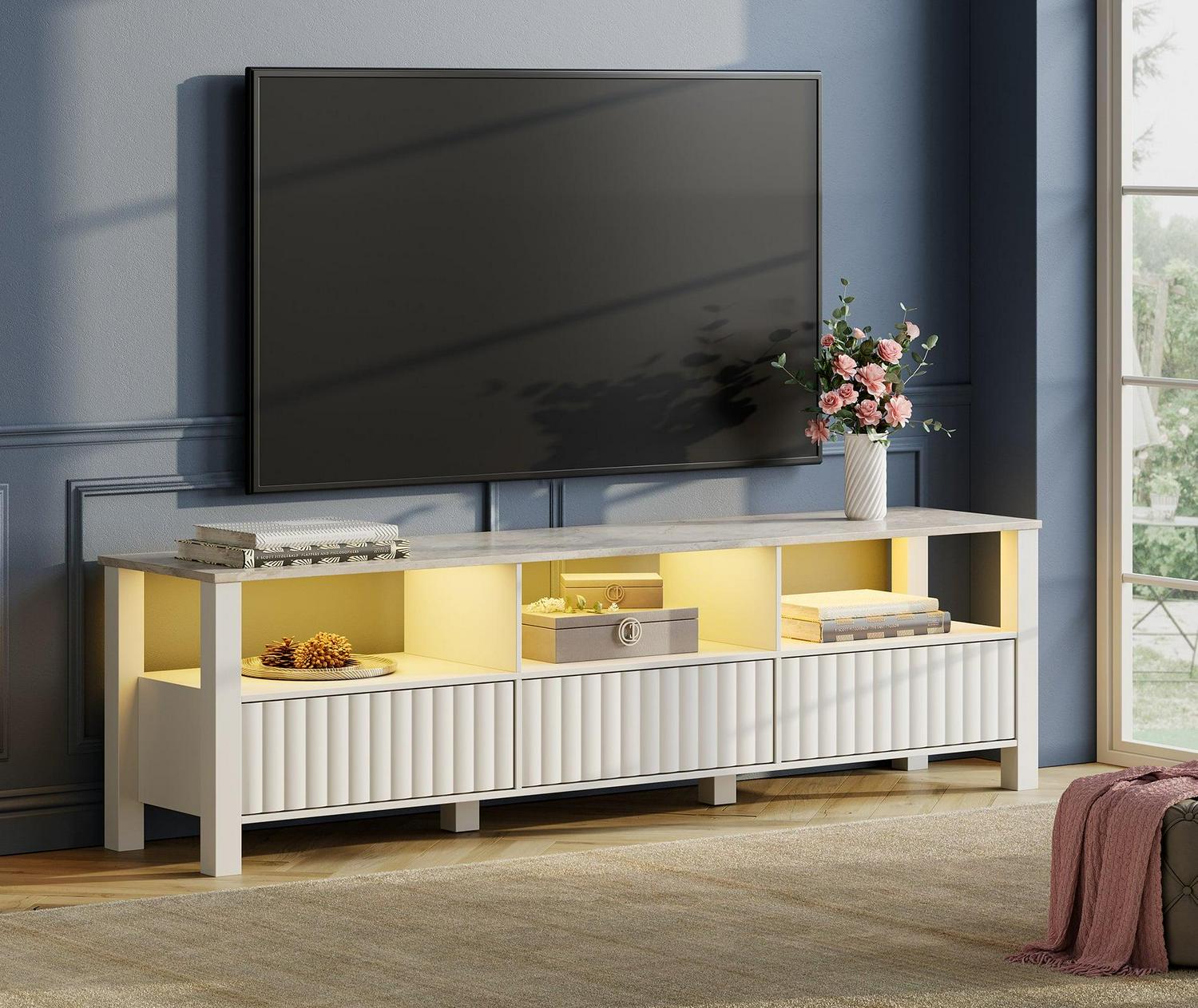 TV Stand for 75 Inch TV Stands with LED Lights, Media Console Entertainment Center Television Table with 6 Open Shelves for Living Room, Brown 70 inch