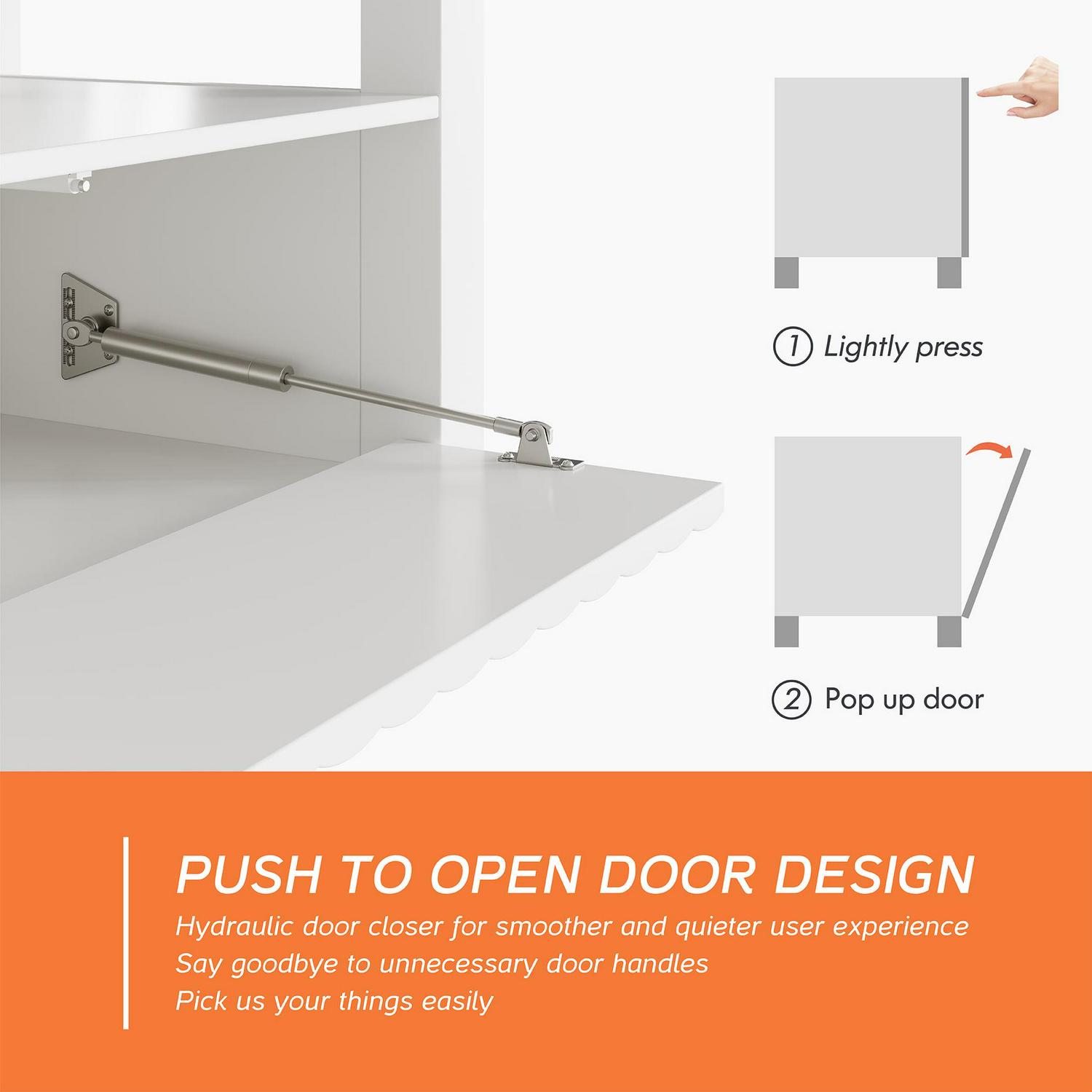 6 Cubby Storage Designed with 3 open shelves and 3 storage cabinets offer ample storage space to you. And the cabinet door is equipped with hydraulic door closer for smoother and quieter user experience.Characterized by a wide tabletop, the 70 inch TV stand can accommodate TVs up to 75 inch.