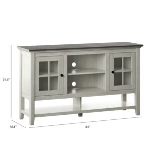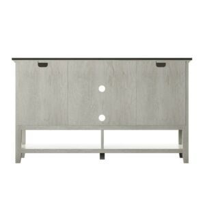 Get both style and function from this TV stand. It mixes traditional and modern farmhouse design for the ideal piece of furniture for a quick living room upgrade. Adjustable shelves in each side cabinet along with a large lower open shelf give you plenty of space for media components and electronic accessories. You can also stow away other living room essentials like throw blankets, movies, games, and more. Whether you have a quiet night in or host friends for a movie night, it s the perfect piece to set the mood for any occasion.