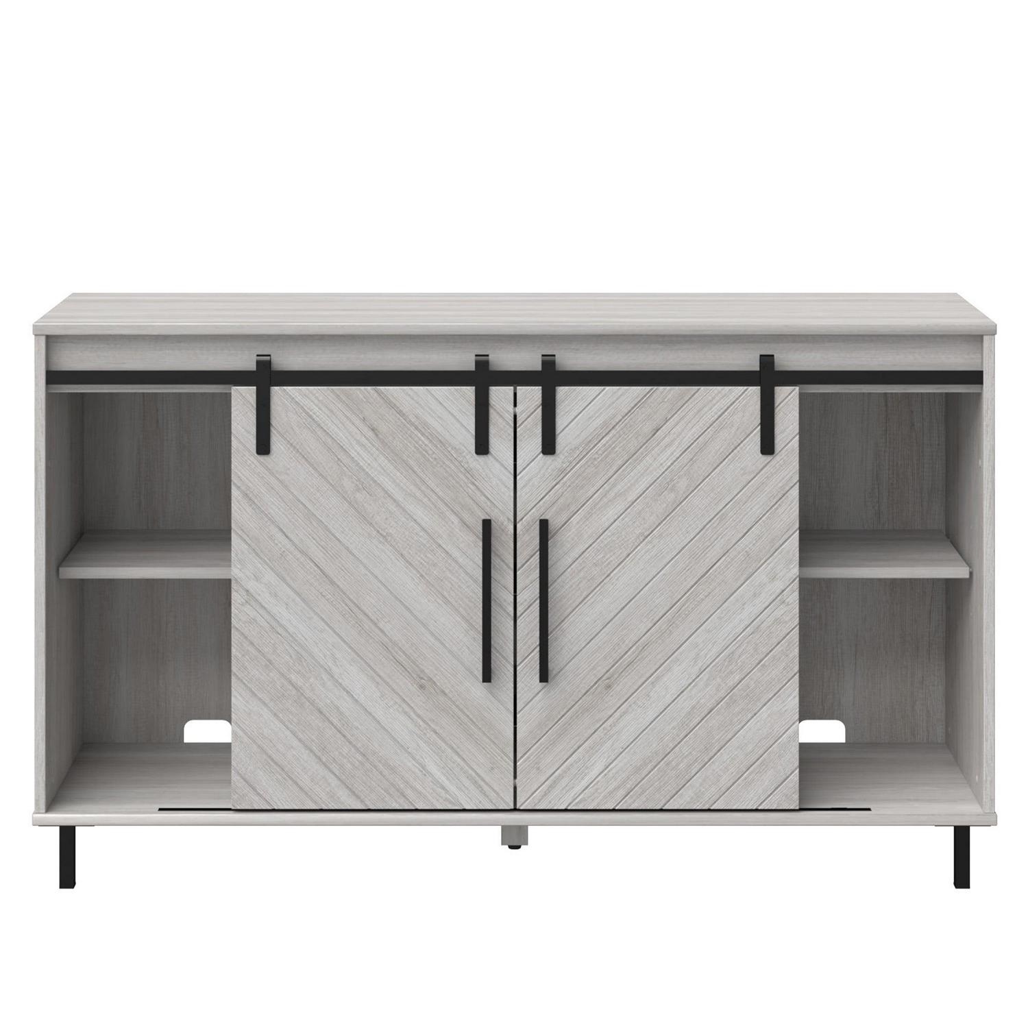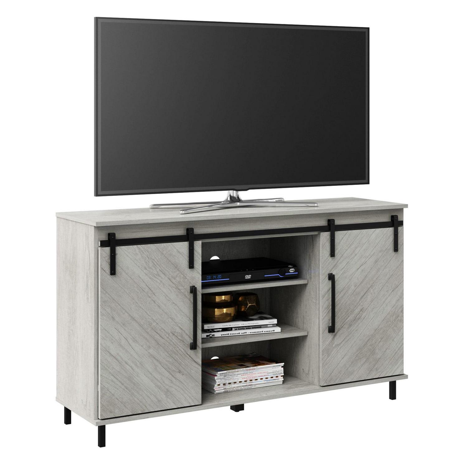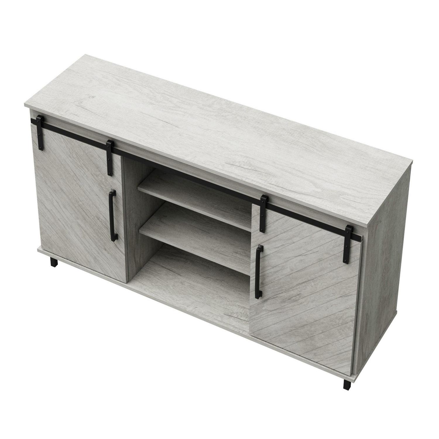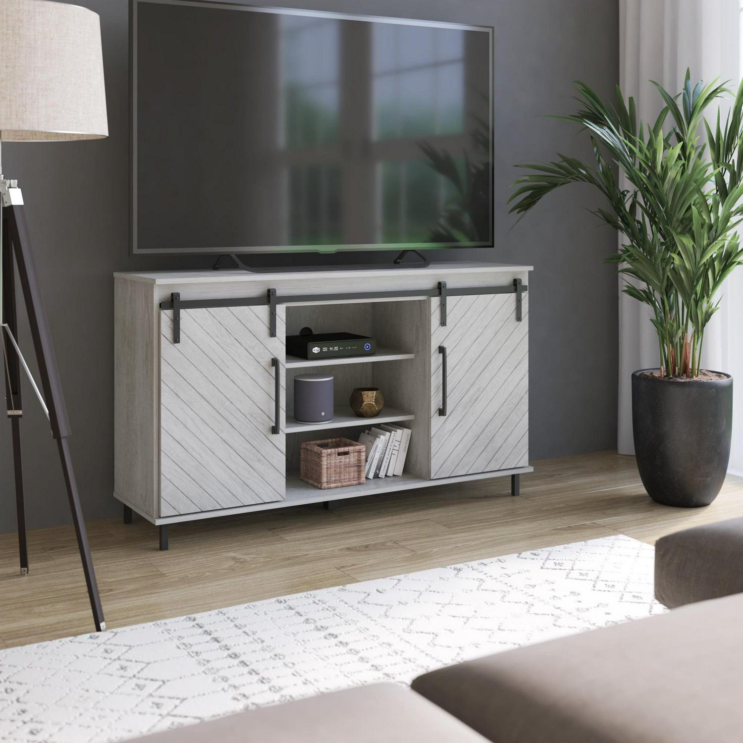 TV Stand for TVs up to 60a with Diagonally Planked Sliding Barn Doors in Sargent Oak