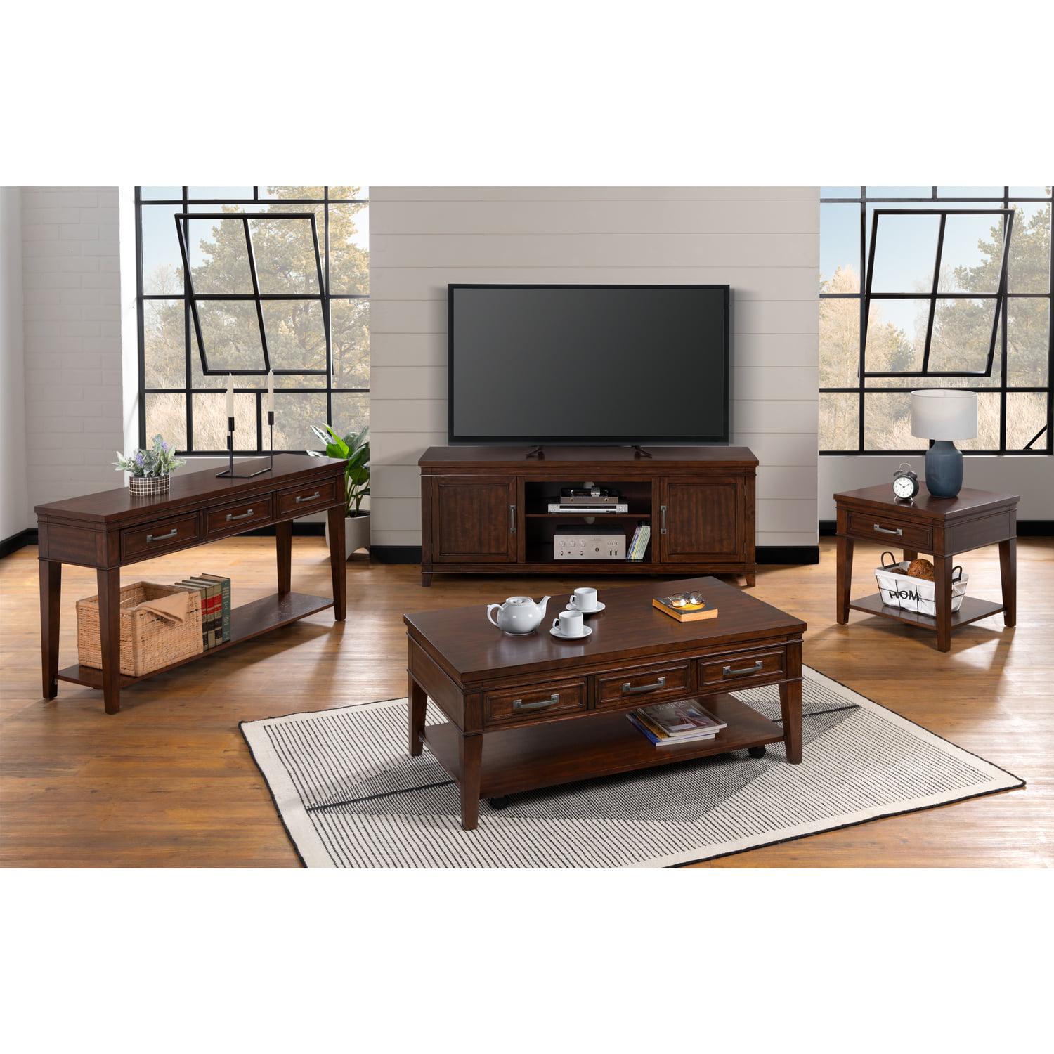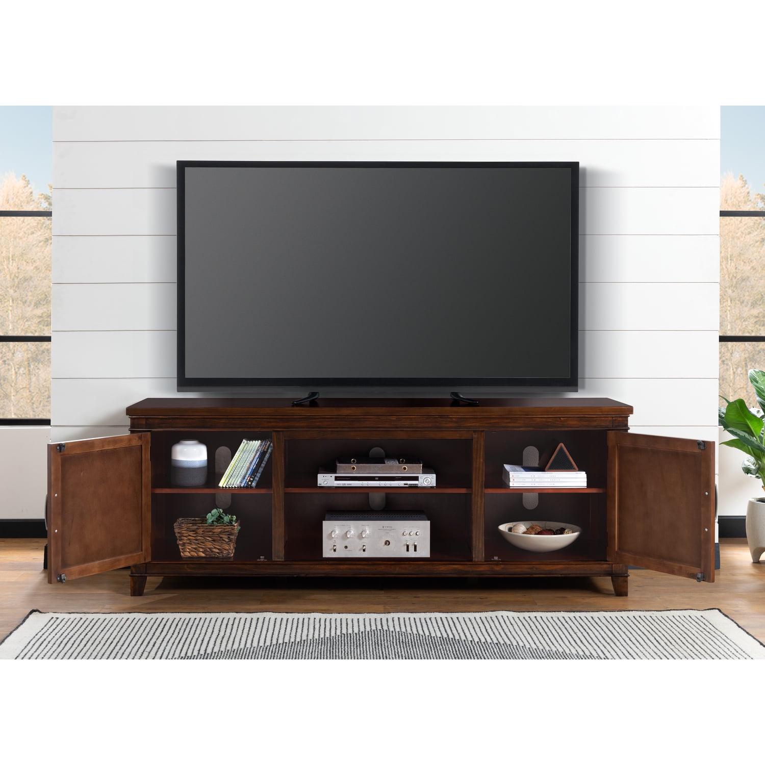 – Finish: Coffee Walnut; Perfectly designed and scaled for large 70″ to 75″ flat panel TVs