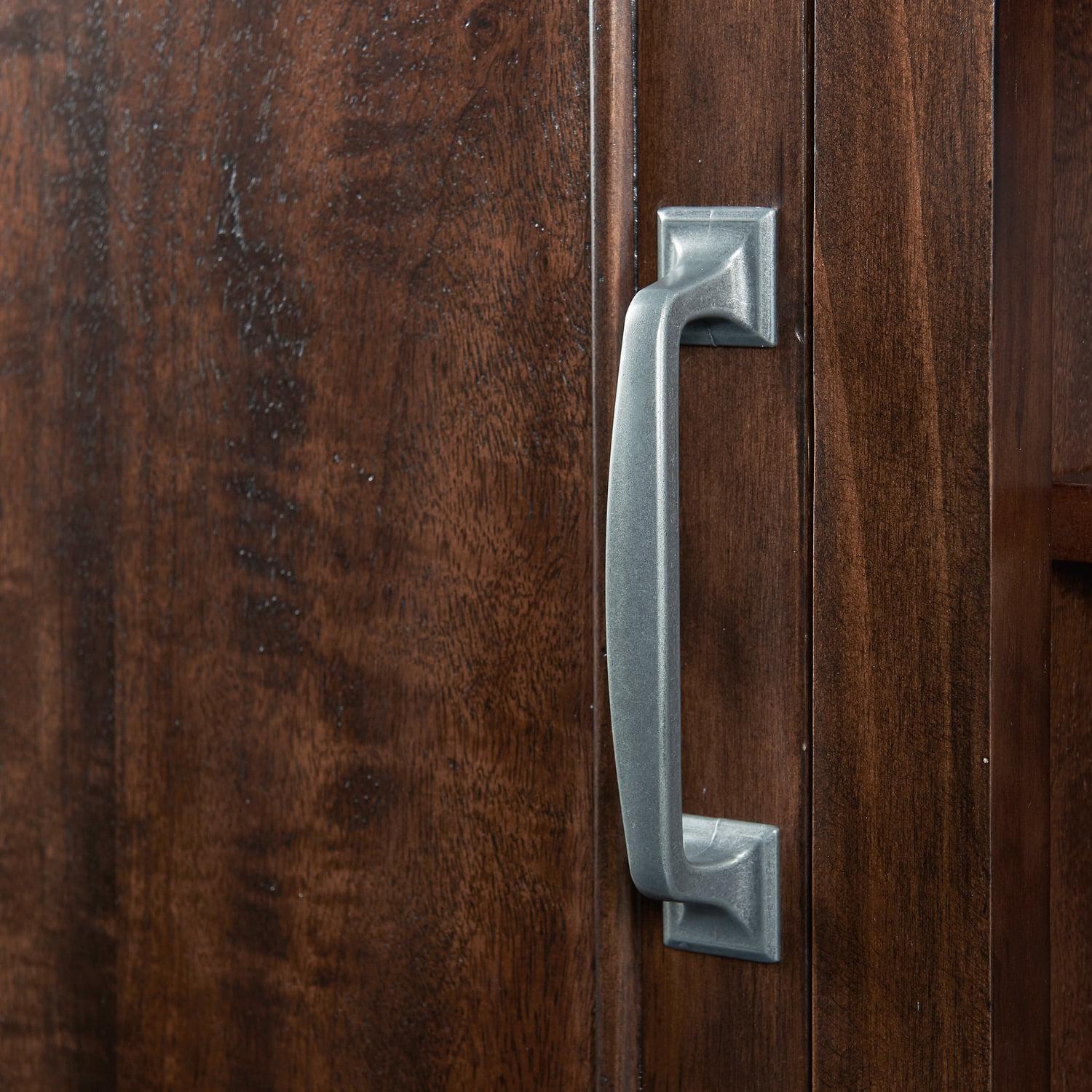 – Antique pewter finished pulls on the doors; Constructed of mango veneer, solid pine, and MDF for extra durability and strength
