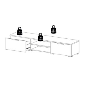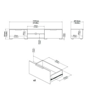 – Two drawers, one adjustable shelf in media compartment