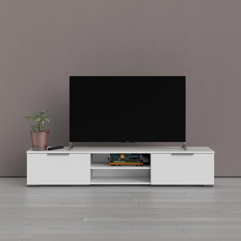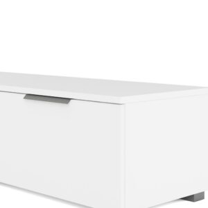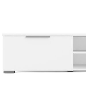 The Match 2 Drawer 2 Shelf TV Stand steals the show with a low-profile design that can handle up to a 100 lb. TV and all your entertainment gear. Sleek storage includes two open media compartments for streaming devices and gaming consoles, two spacious drawers with minimalist metal handles and wire management to keep cords neatly out of view. The foil surface is fade resistant and easy to clean with a damp cloth. All in a Danish modern style that blend seamlessly with any decorating style. This TV Stand has a Scandinavian look and design, made from Engineered Wood and made in Denmark