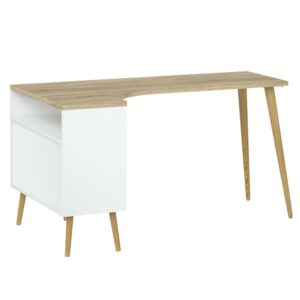 - Constructed with engineered wood and solid oak legs
