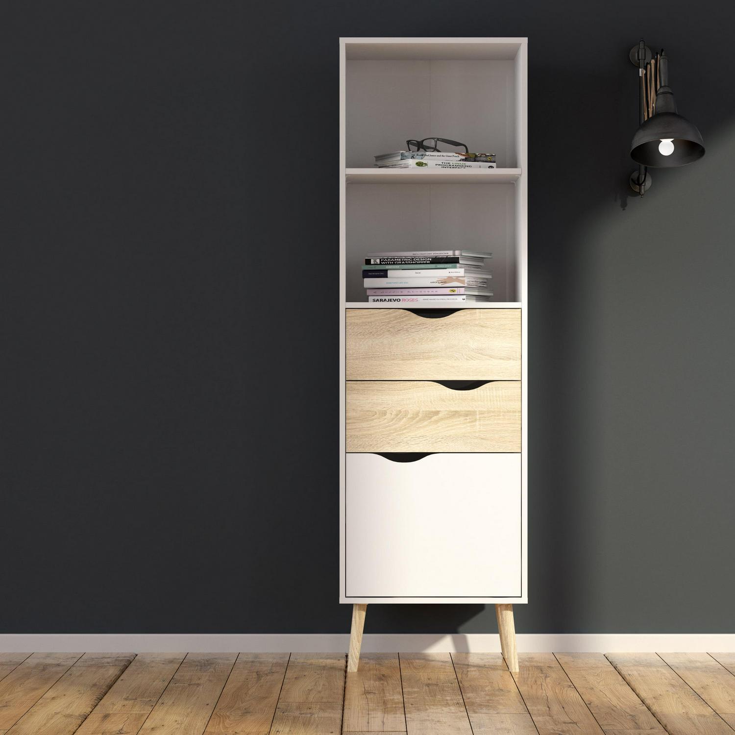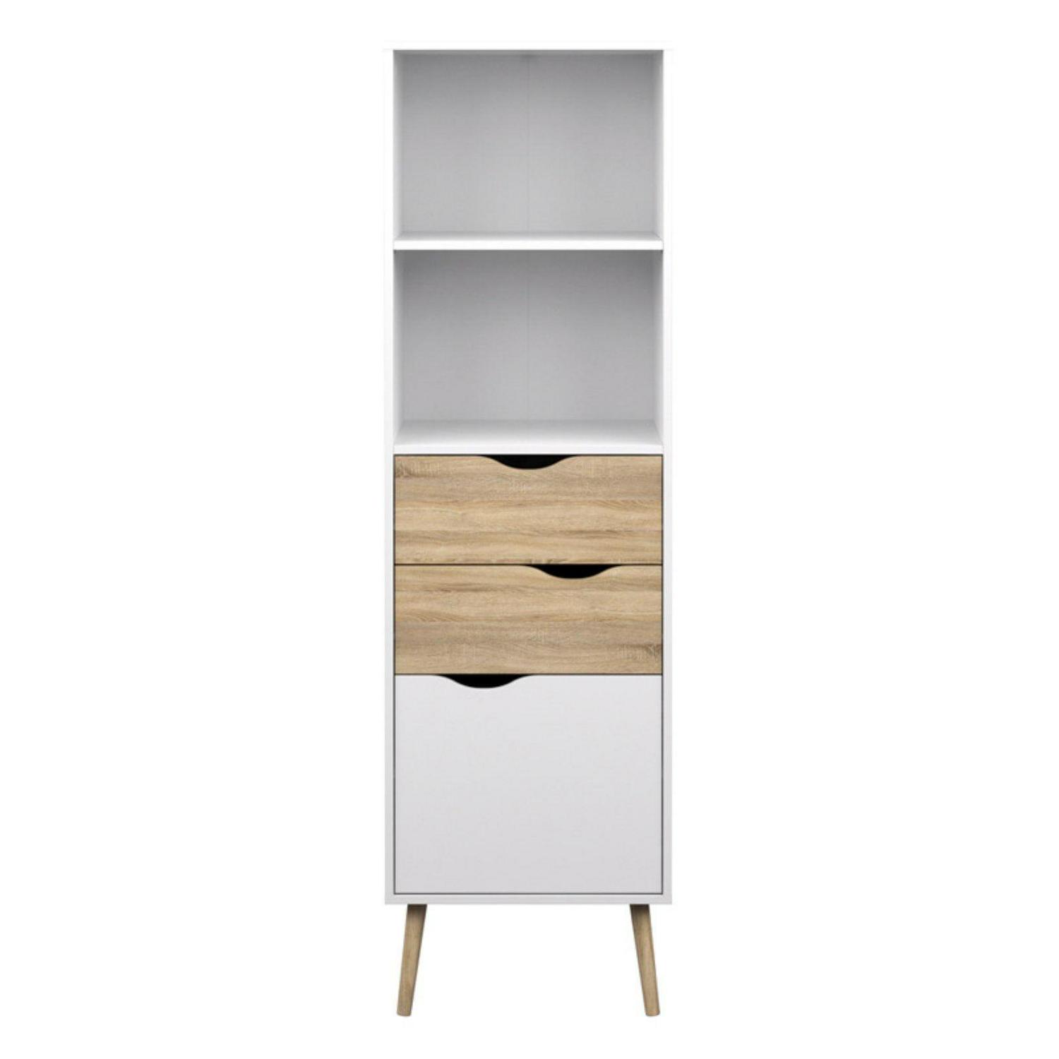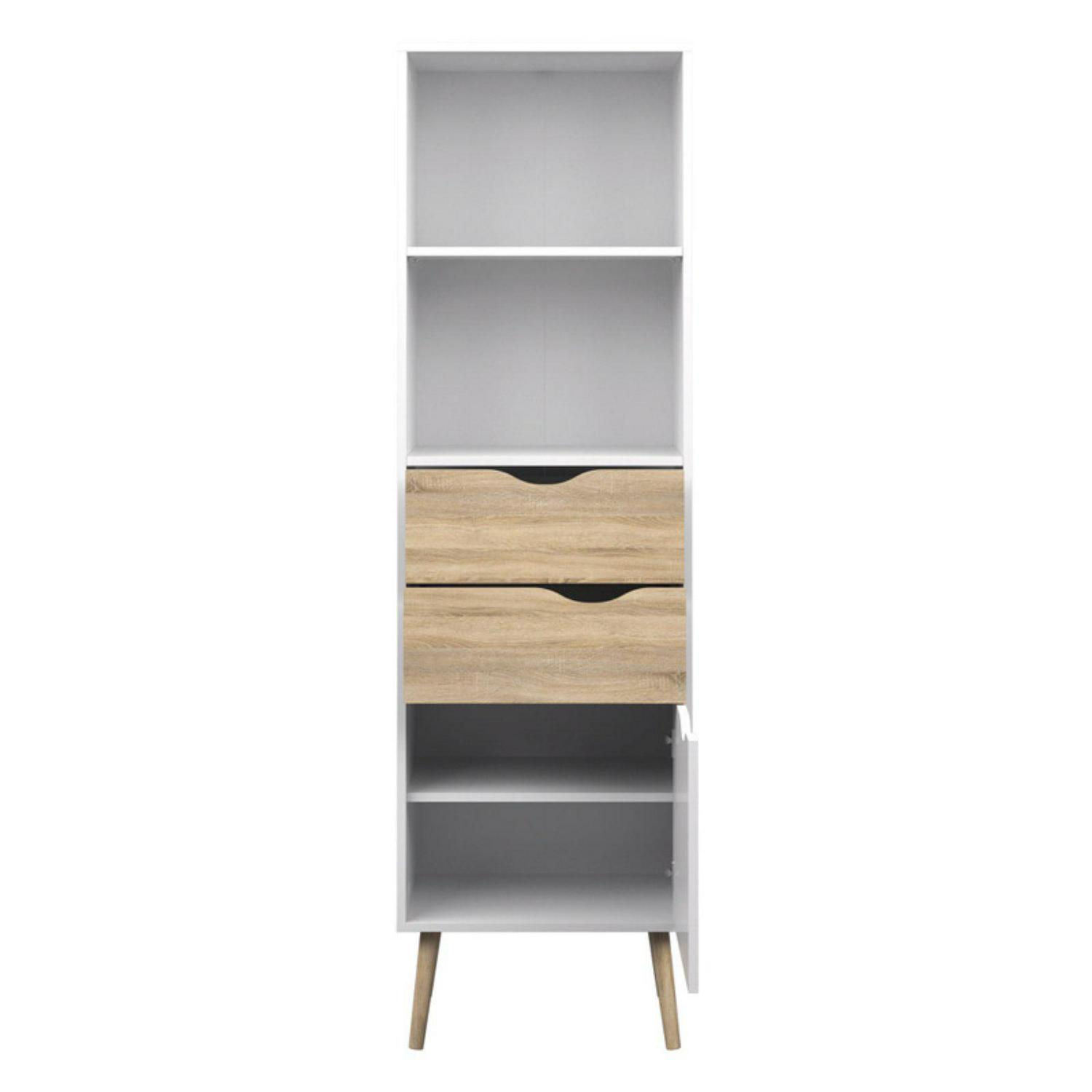 Diana Bookcase with 2 Drawers and 1 Door, White/Oak Structure