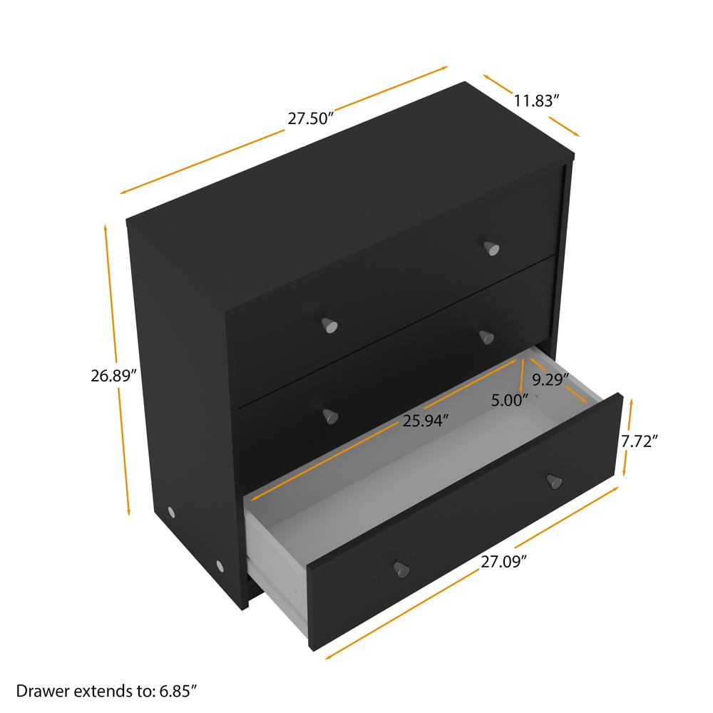 Assembled dimensions: 28.50″W x 11.85″D x 26.89″H Product Weight: 40 lbs Simple, compact style fits any décor, Great for small space living Three drawers provide storage for your clothes Interior Drawer Dimensions: 25.94 inches Wide x 5 inches High x 9.29 inches Deep Plastic pewter colored drawer knobs offer a nice accent Drawers retract smoothly on plastic glides Product is shipped in 1 box 3D Interactive assembly through BILT: Instructions for this product are available through the free BILT app Scan the QR code to find a revolutionary way to assemble & install product with voice, text, & interactive animated images. Suggested number of people for assembly is 2 Product is shipped in 1 box Made from engineered wood Made in Denmark Scandinavian look and design Includes assembly manual and all necessary hardware and fasteners. Components are pre-drilled and pre-cut ready for easy assembly! Part of the Studio furniture collection Eco-friendly Age Group: Adult