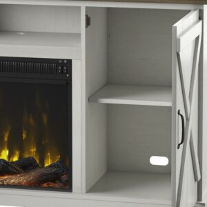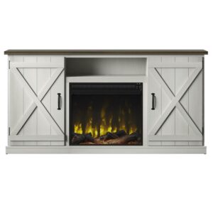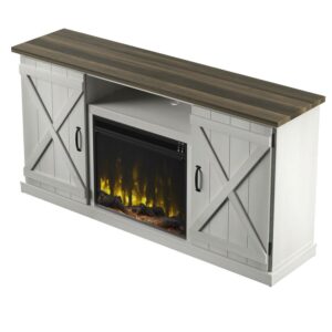 Twin Star Home Barn Door TV Stand for TVs up to 70 inches with ClassicFlame Electric Fireplace, Old Wood White
