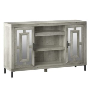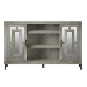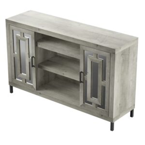 Give your living room (or any space in your home) a glamorous look with this stunning TV stand. Side cabinets with mirrored doors and decorative mullions show off your style while adjustable shelves keep all your entertainment must-haves organized. Just can’t get enough of this design! We also have a matching bar cabinet for a truly stunning space that is bound to impress all your guests.