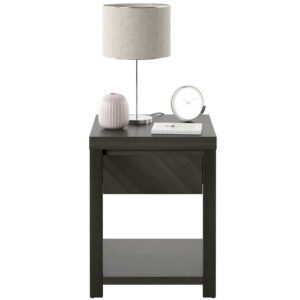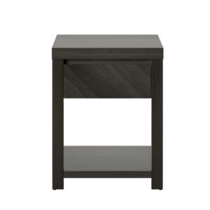 With one drawer and an open storage area underneath, this modern one-drawer nightstand is versatile and adaptable to most styles of décor. Two built-in USB ports on the back allow you to charge your phone and other devices with ease, while the top surface of the nightstand is big enough for a lamp, framed photo, or small clock. Clean lines and modern angles provide a stylish, up-to-date look, while quality construction delivers lasting durability. Give your home a total makeover with coordinating collection pieces.
