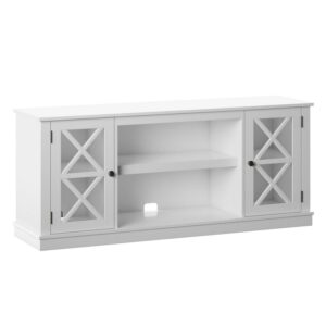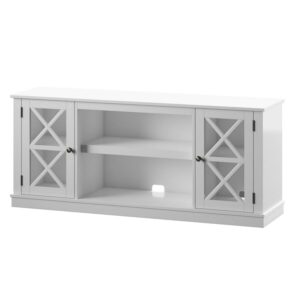 Twin Star Home Modern Farmhouse TV Stand for TVs up to 65a with Glass Doors, White