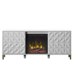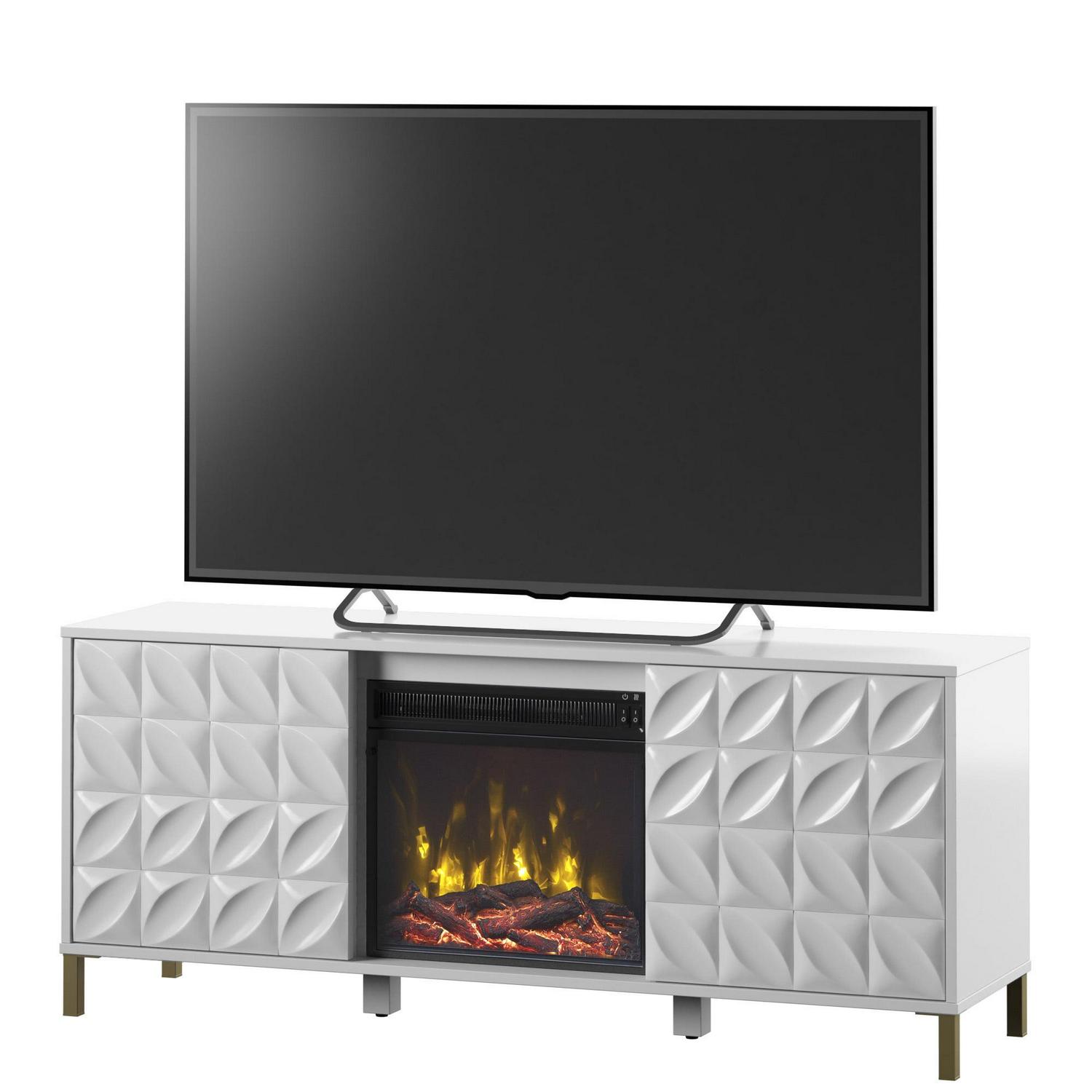 Twin Star Home Textured Doors Fireplace TV Stand for TVs up to 60 , White