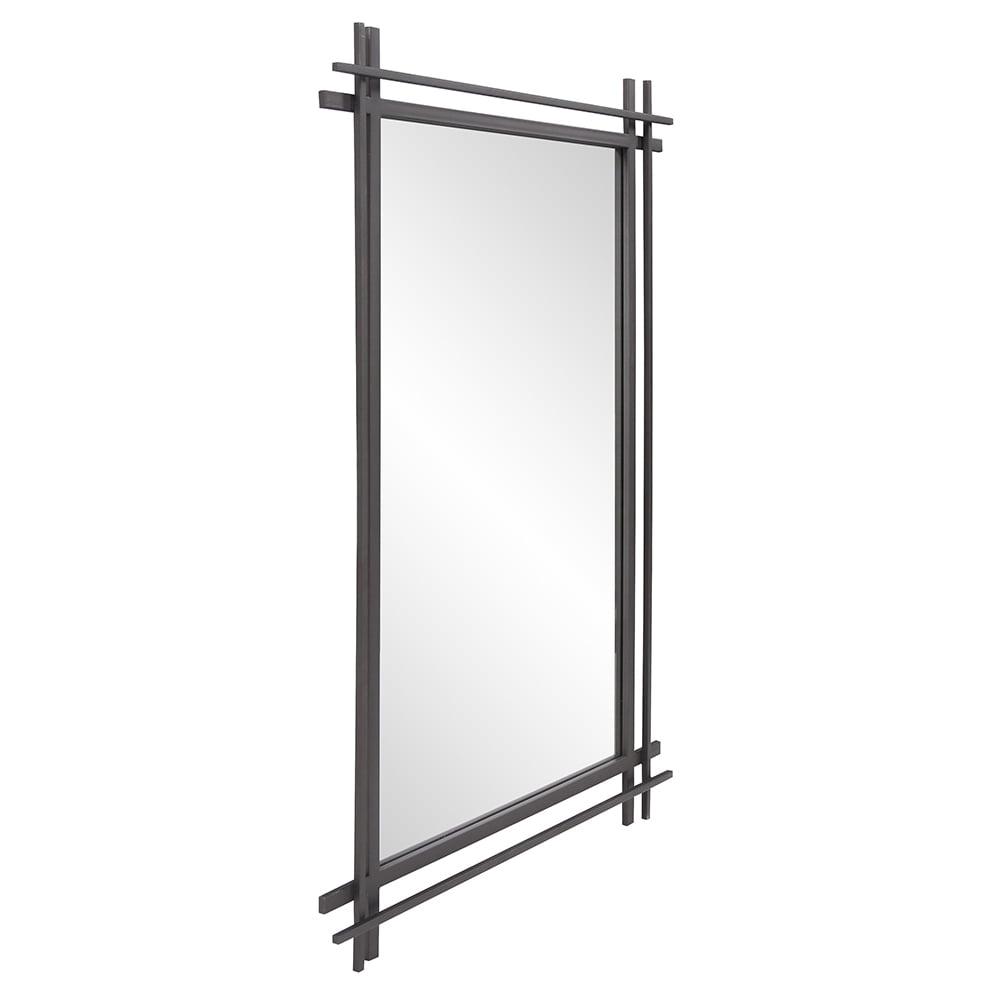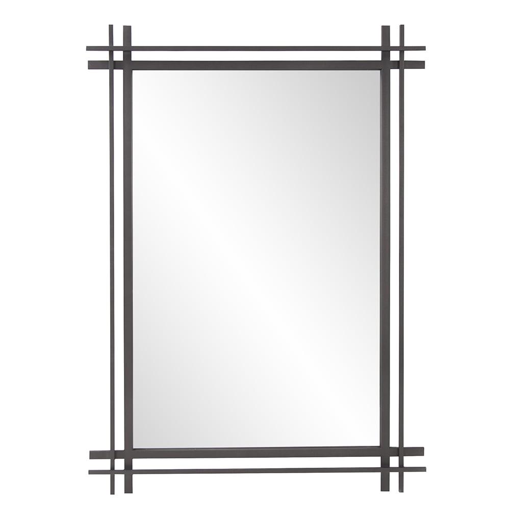 Our Clarke Mirror features intricate detailing of dimensional criss-crossed parallel lines fashioned from iron into a rectangular frame. The graphite finish blends to create this unique, industrial look. This collection is so versatile that many of our accent tables and decorative accessories can easily be paired up to make a statement. Keyhole slots are manufactured into the back of the mirror so the piece is ready to hang right out of the box in either a horizontal or vertical orientation.