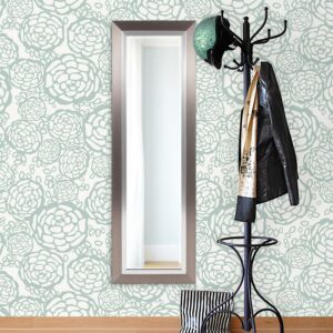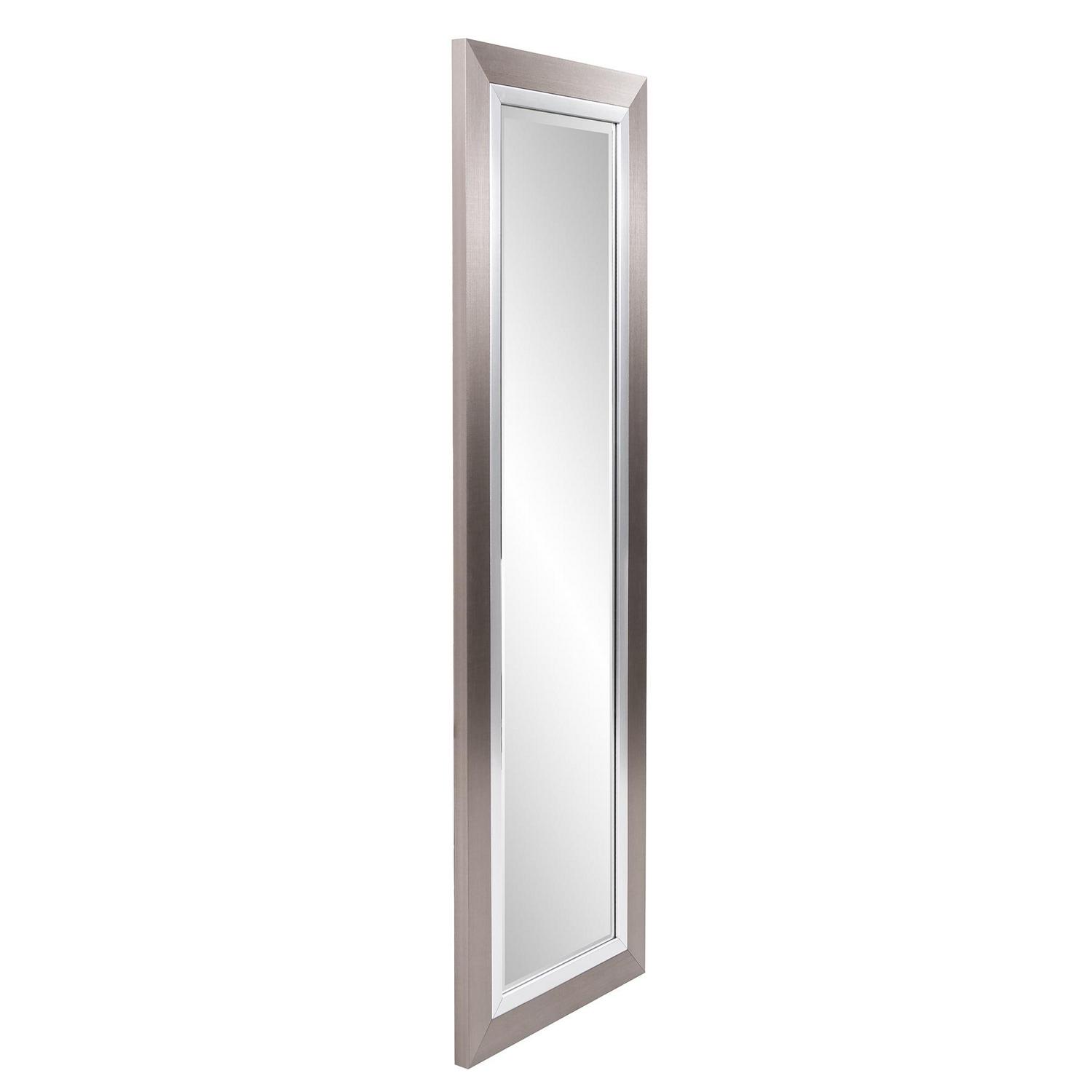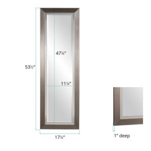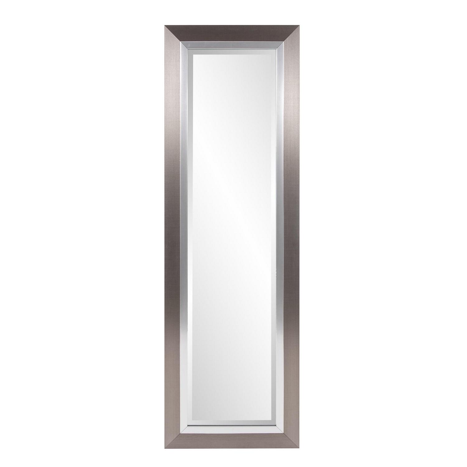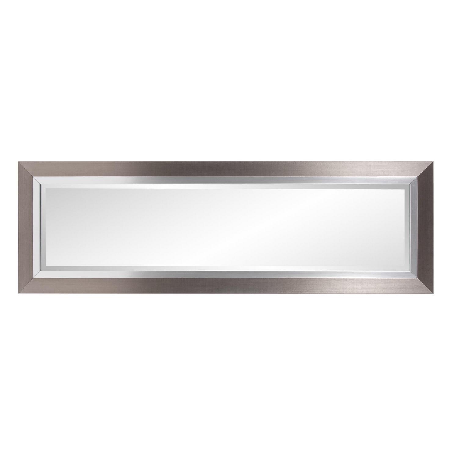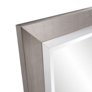 This mirror is a simple, yet elegant piece with a sleek tall, rectangular frame. The piece is then finished in a brushed silver leaf and trimmed with a bright silver inset. It is a perfect focal point for an entryway, bathroom, bedroom or any room in your home. D-rings are affixed to the back of the mirror so it is ready to hang right out of the box! The mirrored glass on this piece has a bevel adding to its beauty and style. The Chicago Mirror can be hung vertically or horizontally. Additional sizes available.