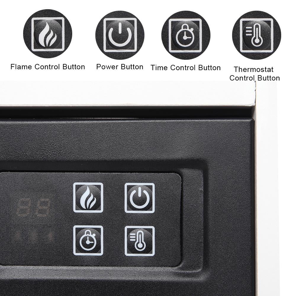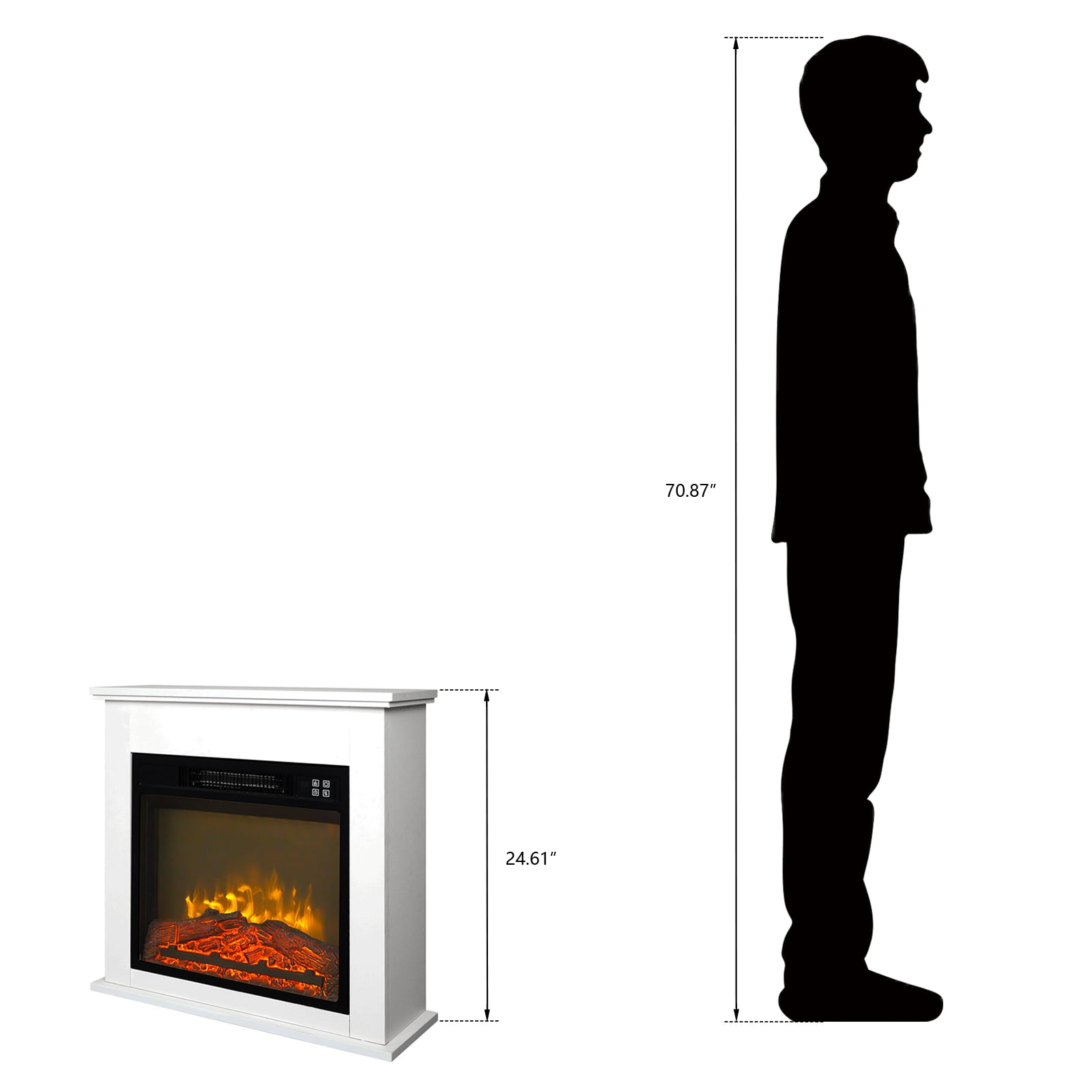 Features: WOODEN CABINET Fluted pilasters and timeless craftsmanship details complete the classic demeanor of traditional style; This fireplace Mantel is beautifully crafted in a modern design that complements virtually any home decor. ADJUSTABLE HEAT & DUAL-MODE Temperature range: 62~82°F(17~27°C). The heat level can be adjusted according to your need, it provides well-distributed heat without affecting the humidity of the air, your skin will breath the warm and comfortable air. The dual-mode feature allows the fireplace to operate without heat or flame making it suitable use in all-season. SIMPLE INSTALLATION & REMOTE Easy installation on wall or counter due to detailed instructions, durable bracket & quality mounting hardware included. As it is remote operated, you can breezily set timer, adjust flame level,and manage heat around the room(Batteries included). SAFE & SAVE ENERGY Adjustable thermostat (0.5 hour to 6 hours) and a safety thermal cut-off device prevent overheating, always offering intimate protection for children. Run on electricity, less cost and maintenance than traditional heating. Avoid mounting it directly under a flat-screen television, as that may limit the heater’s use. THREE FLAME LEVEL Medium;low and high. Specifications: Model: SF103-18G SX181 Power: 1400W Temperature: 62~82°F/17~27°C Timer Range: 0.5 Hour – 6 Hours Three Flame Level: L1-L2-L3 Digital Display: Yes Operation Method:Body Button And Remote Control Features: Auto-Shutoff, Overheat Protection, Control Panel Operation Material: Wooden Iron & Glass Work Decibel: Approximately 45db Certifications: CSA Warranty: 1 Year Color: Black Fireplace Dimensions: (18 x 5 x 17.1)” / (45.7 x 12.8 x 43.5)cm (L x W x H) Wooden Cabinet Dimensions: (24.8 x 7.87 x 24.61)” / (63 x 20 x 62.5)cm (L x W x H) Package Includes: 1 x Electric Fireplace Insert 1 x Wooden Cabinet 1 x Top Trim 2 x Side Trim 1 x Remote Control 1 x User’s Manual 1 x Mounting Hardware Set (12 Screw)
