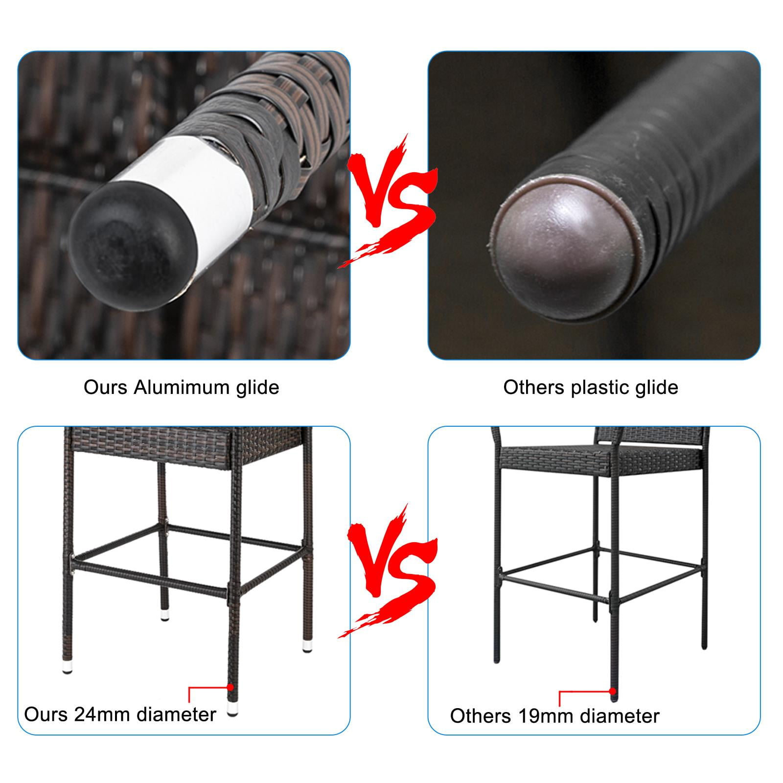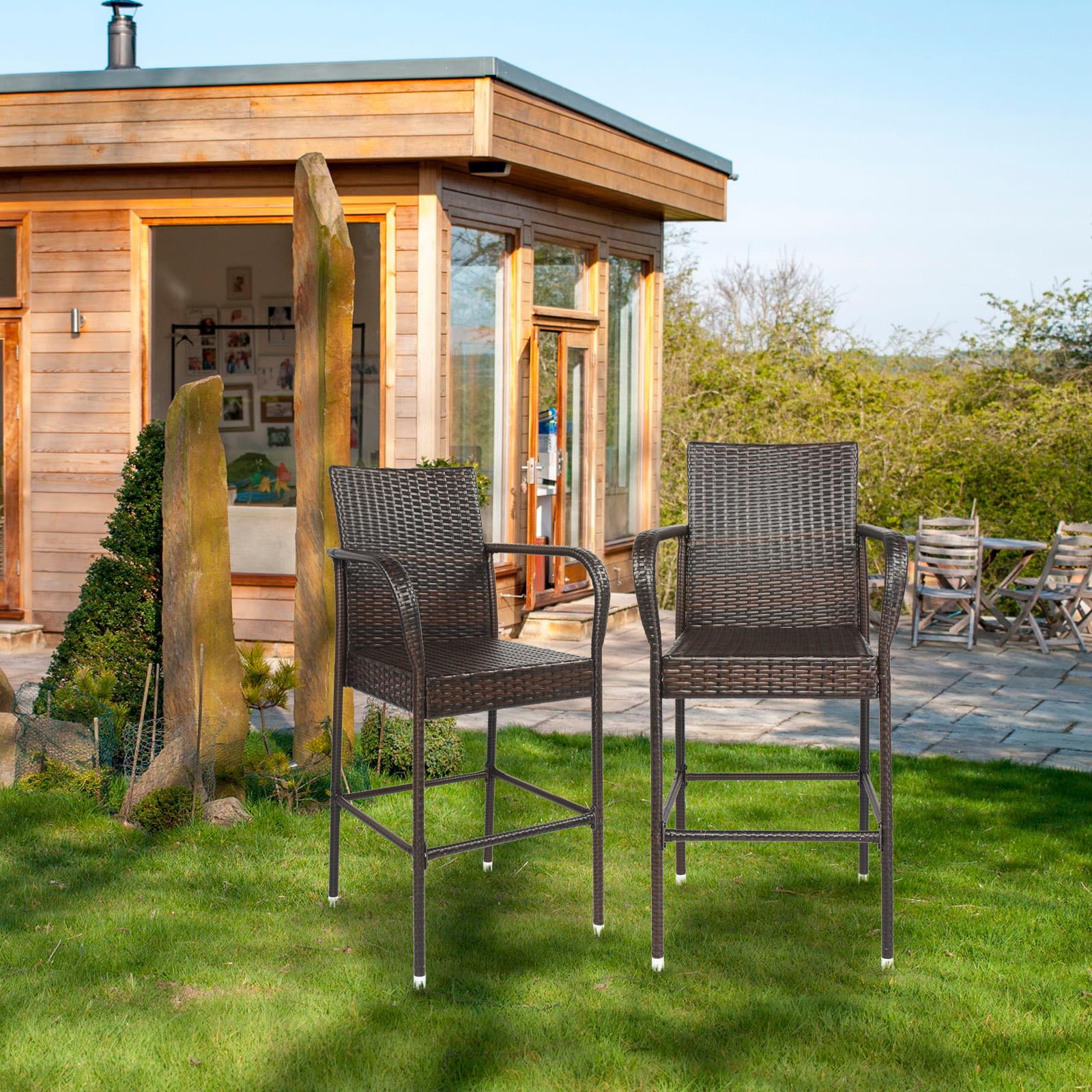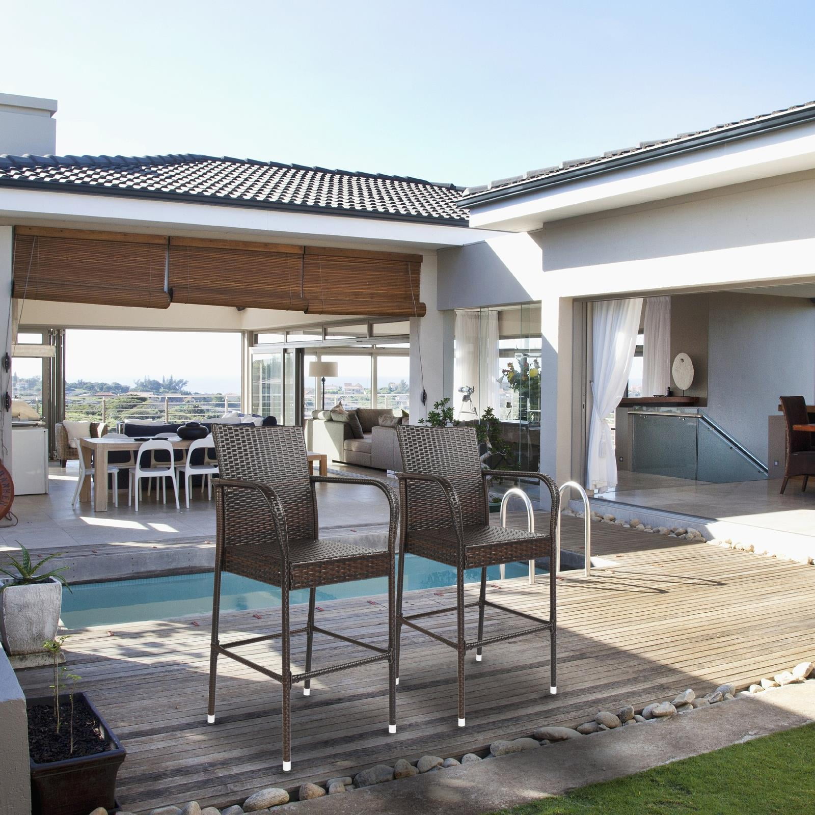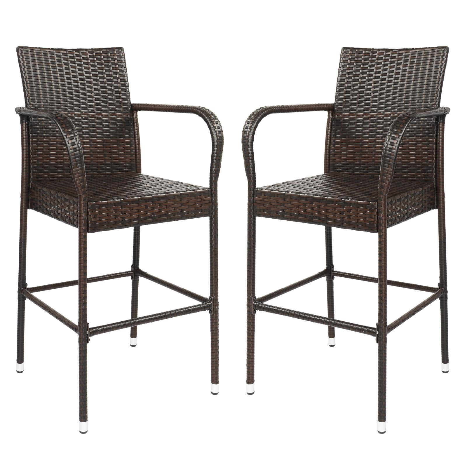 UBesGoo 2-Piece Outdoor Patio Bar Stools Wicker High Bar Chairs, Outdoor Bar Stools, Brown