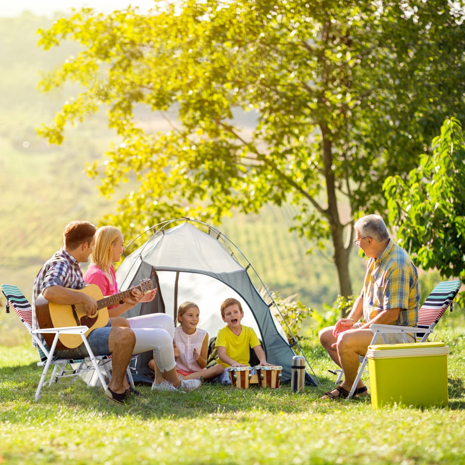 Features: Foldable Design: When unfolded, the chair can recline into 4 different positions for ultimate comfort while soaking up the rays. Reclines smoothly to any angle from upright to almost horizontal. Made from steel frame and 600D polyester fabric. Folds flat for easy transport & storage. High Quality and Durable: Powder coated steel and 600D polyester fabric construction means this lounger can be left out for all the seasons. Satisfaction Guarantee: We sincerely provides high quality service for customers. If you have any question about our product, please contact our customer service and we will reply in 24 hours. Warm Prompt: Please confirm the product size before purchasing, to make sure the size of our product is in line with your requirements. After-sale Service: Since the satisfaction of customer is always our primary concern,so if you have any problem when using this product please don’t hesitate to contact us first. Specifications: 1. Material: Steel And 600D Polyester Fabric 2. Color: White Frame And Multi-Color Fabric 3. Weight: 2.2Kg / 5lbs 4. Chair Overall Dimension: (22 x 23.6 x 24.8)” / (56 x 60 x 63)cm(L x W x H) 5. Folding Dimension: (22 x 21.65)” / (56 x 55)cm(L x W) 6. Weight Capacity: 220Lbs Packages Includes: 1 x Beach Chair