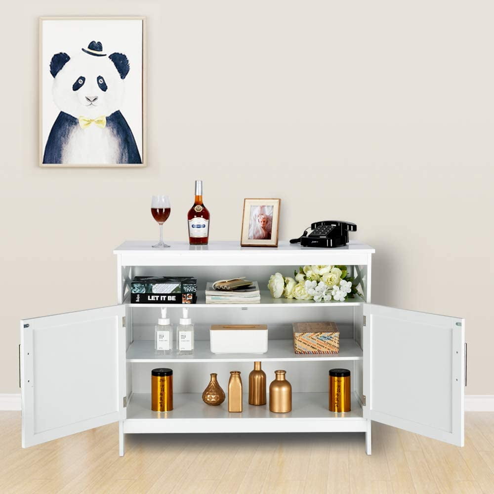 UBesGoo Sideboard with 2 Doors, Kitchen Storage Cabinet Buffet with Adjustable Shelf, White