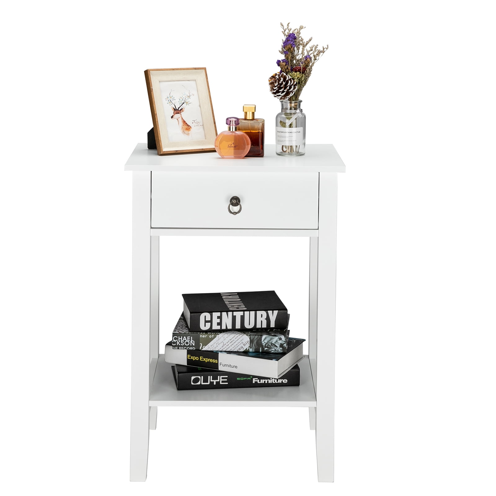 UBesGoo Night Stand Storage Bedside Table with Drawers Cabinet Multi Function Shelf Modern Fashion Design White Features: Material and Size: Fiberboard(MDF) veneer,overall dimensions:18.11 x 13.78 x 27.56″” Storage drawer and open shelf: shelf for storing or display which provides additional storage space White finish with modern square design,ideal for beside using or living room placement,will provide years of enjoyment Simple stylish design options functional and suitable for any room,sturdy on flat surface, easy to assemble with parts and tools included CONSTRUCT – 4 short & flat bottom legs protect your floor from stretching – extra large and smooth top surface allows placing more items and perfect to touch Specifications: Material: MDF Wood Color: White Dimensions: (18.11 x 13.78 x 27.56)”” / (46 x 35 x 70)cm (L x W x H) Weight: 18.19 lbs / 8.25 kg Recommend Room: Bedroom Package Includes: 1 x Bedside Cabinet 1 x Instruction Introductions: This Two-layer Bedside Cabinet Coffee Table with Drawer is made of MDF wood material, durable and non-toxic for you daily use. It is suitable for indoor use, likes bedroom etc. It is the perfect solution to save space and store scattered and small gadgets. It is delicate design with beautiful appearance, and gives color to your life. Actually, it is a good decoration to embellish your home. Please choose it if you are looking for a bedside cabinet!