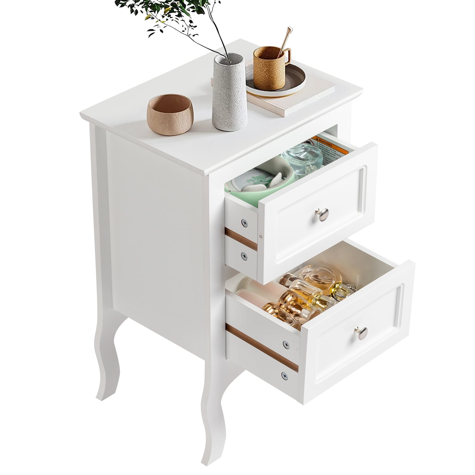 Introductions: Do you want to have a beautiful and practical night table? If so , you must not miss the Country Style Two-Tier Night Table Large Size White. It is made of wood material, which is durable for you daily use. Features: 1.Material & Size:The bedside table is made of wood material for durability.Dimensions:(15.75 x 11.81 x 23.62)”/ (40 x 30 x 60)cm (L x W x H).Also suitable as a gift for family and friends 2.Storage Space:Plenty of storage space with the pull-out drawer to keep small daily used items like remote controllers, keys, glasses neat and clean; tabletop also provides a sufficient place for lamp, clock and cups for your convenience 3.Characteristics:Unlike other bedside tables, our legs are curved, distinctive and beautiful, suitable for a variety of styles. The drawer handle is round metal design, making it easier to pull. 4.Simple Assembly:All necessary parts and hardware are included, easy to assemble with detailed instructions enclosed.If you have any installation problems, please feel free to contact us. 5.Warm Prompt:Please confirm the product size before purchasing, to make sure the size of our product is in line with your requirements Specifications: Material: Wood Color: White Dimensions:(15.75 x 11.81 x 23.62)”/ (40 x 30 x 60)cm (L x W x H) Weight:9.5lbs/8.0kg Package Includes: 1 x Night Table