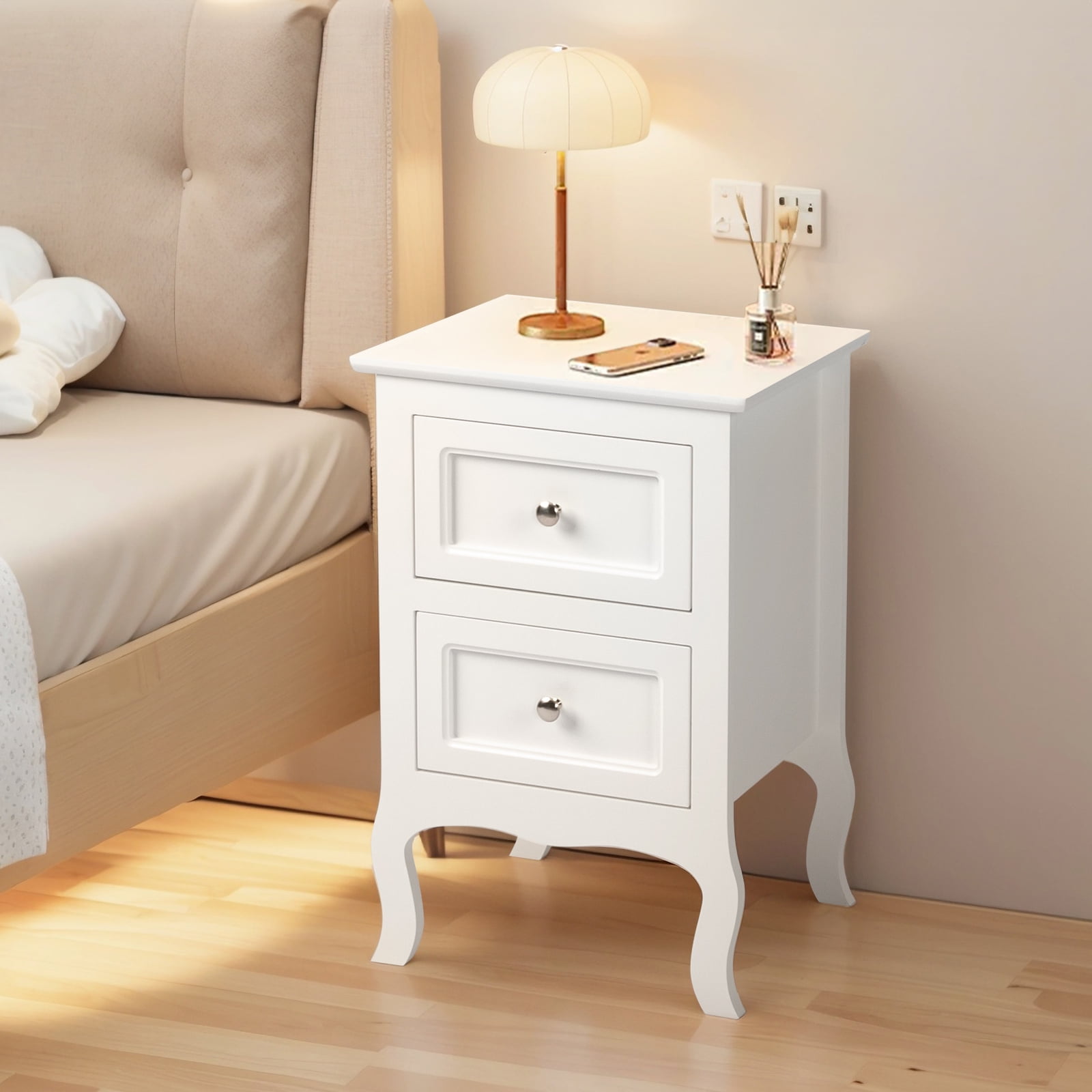 UBesGoo Nightstand End Table with 2 Drawer,White Finish