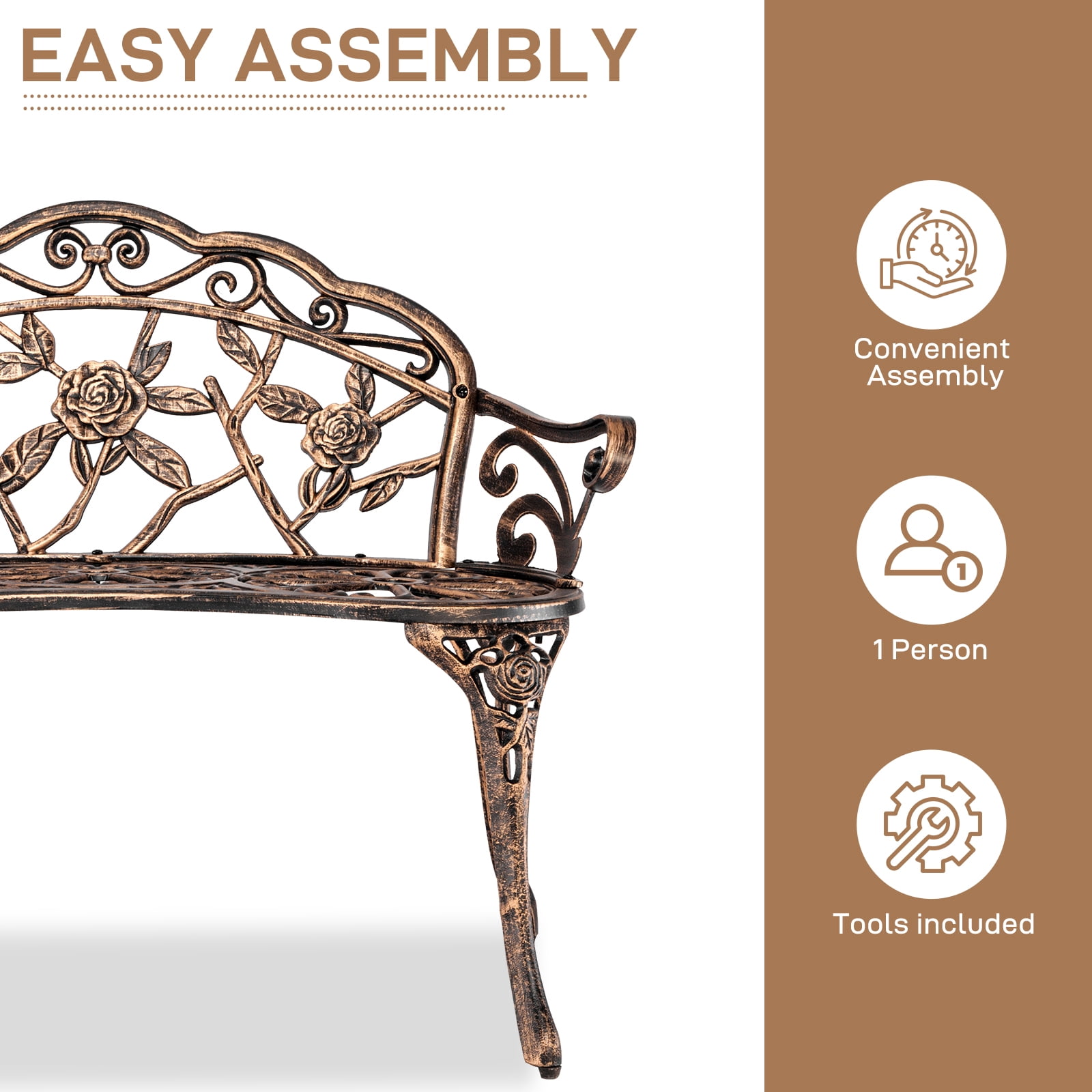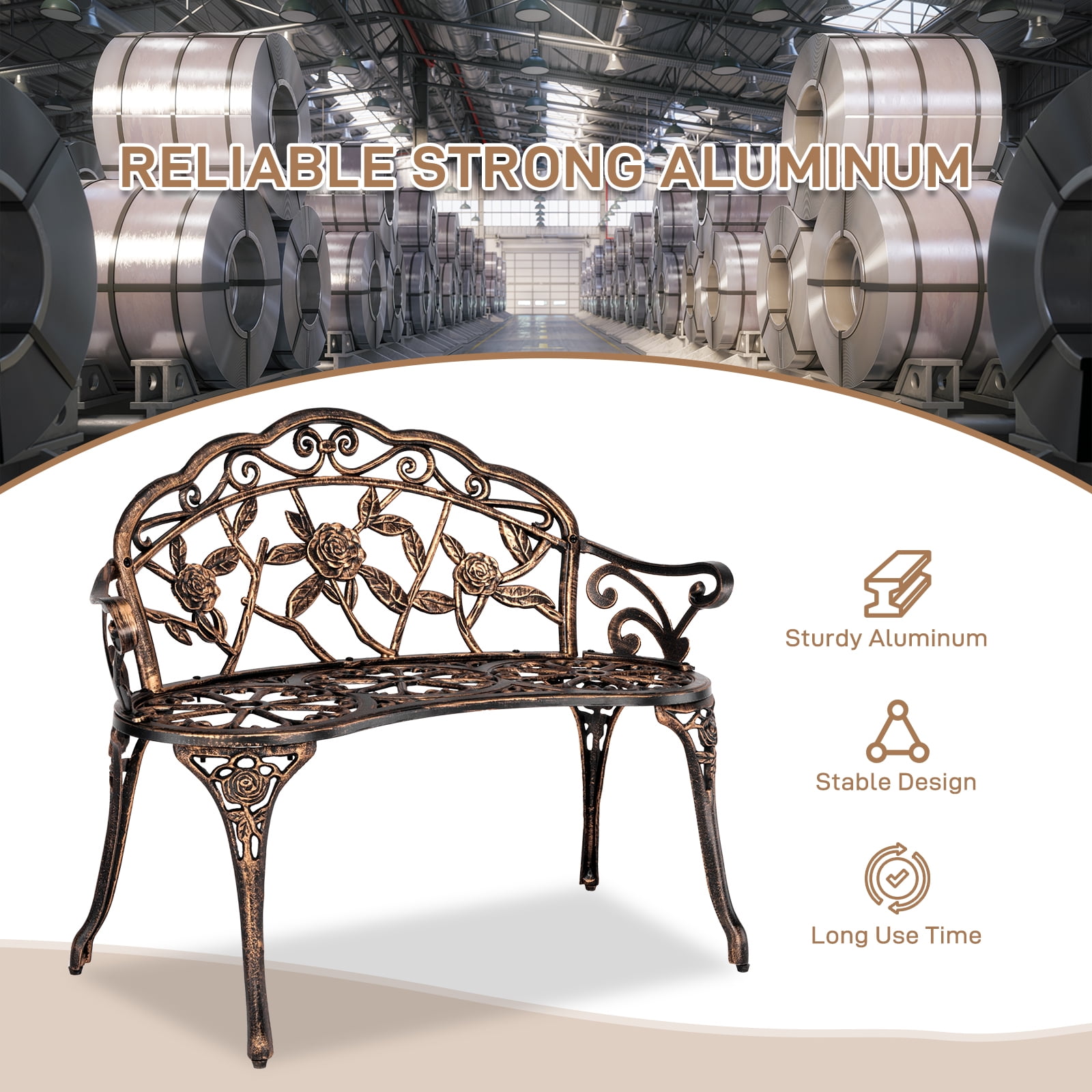 UBesGoo Outdoor Park Patio Bench Leisure Rose Doble Chair, Outdoor Bench for Park, Heavy Duty Metal Bench for Garden, Lawn, Yard, Bronze
