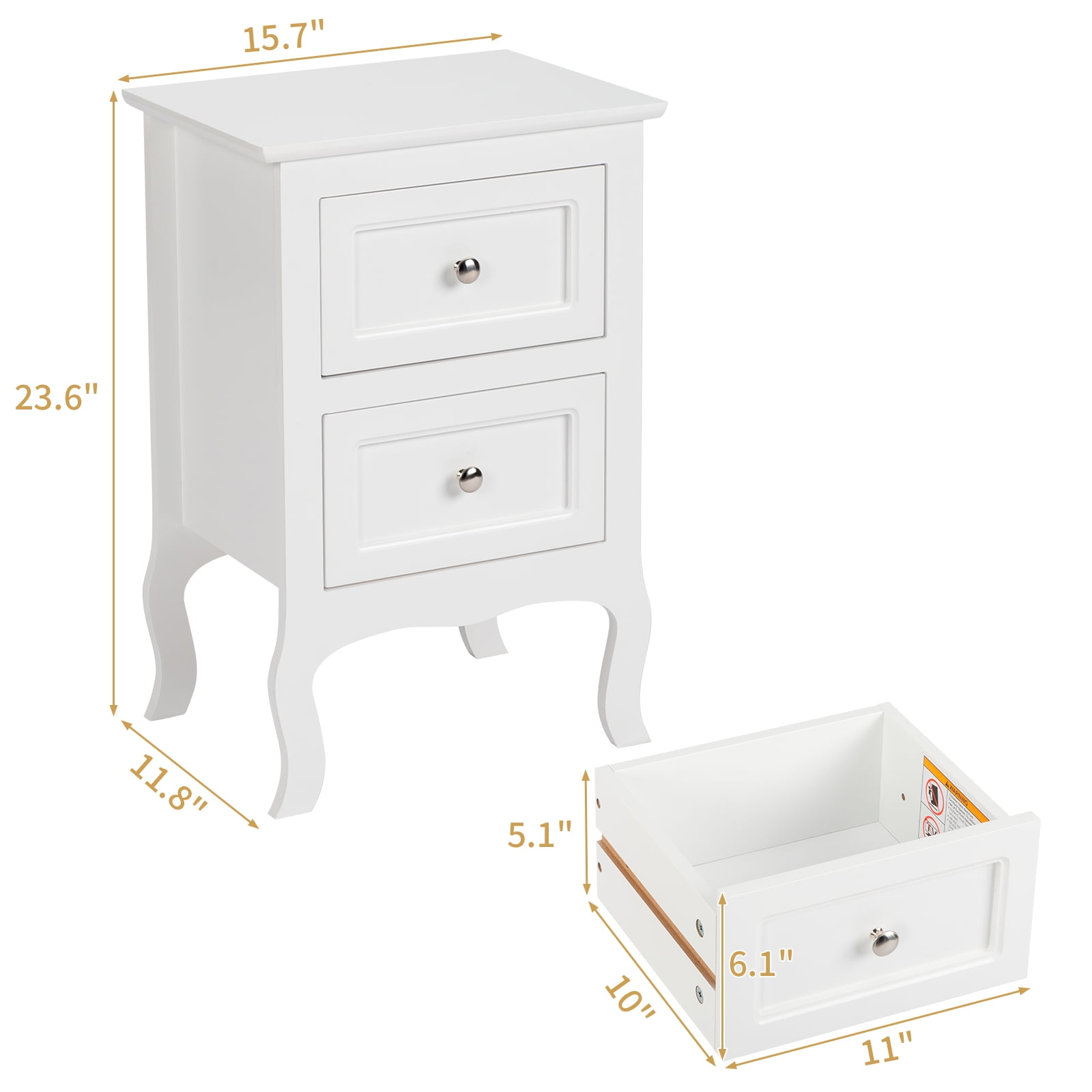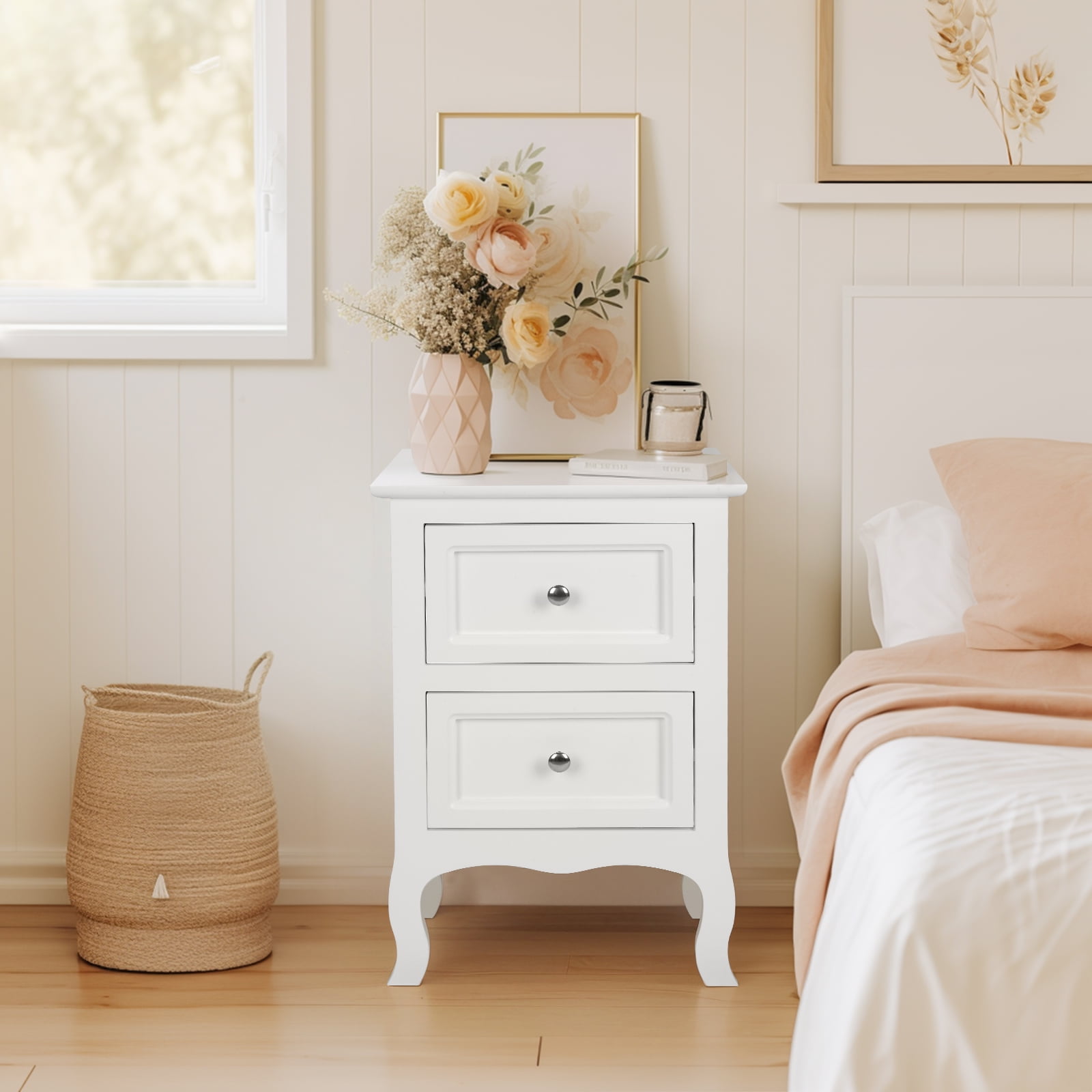 Pastoral-style curved bedside table, looks good and practical Installation method is very simple, with detailed instructions and installation package The storage space is large, there are two drawers, and the top can also put things Set of 2