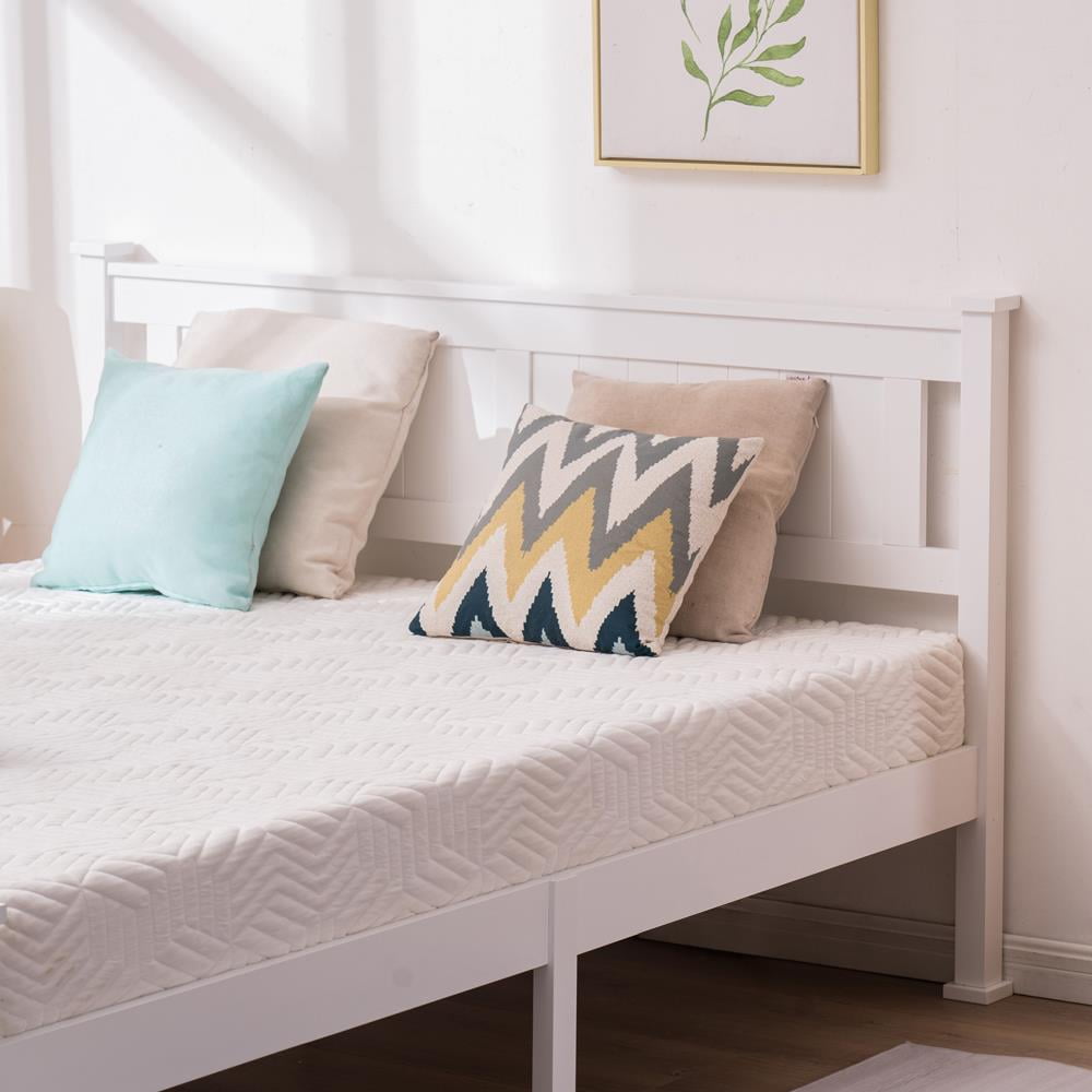 UBesGoo Queen Wood Platform Bed with Hardwood Slats & Headboard, White