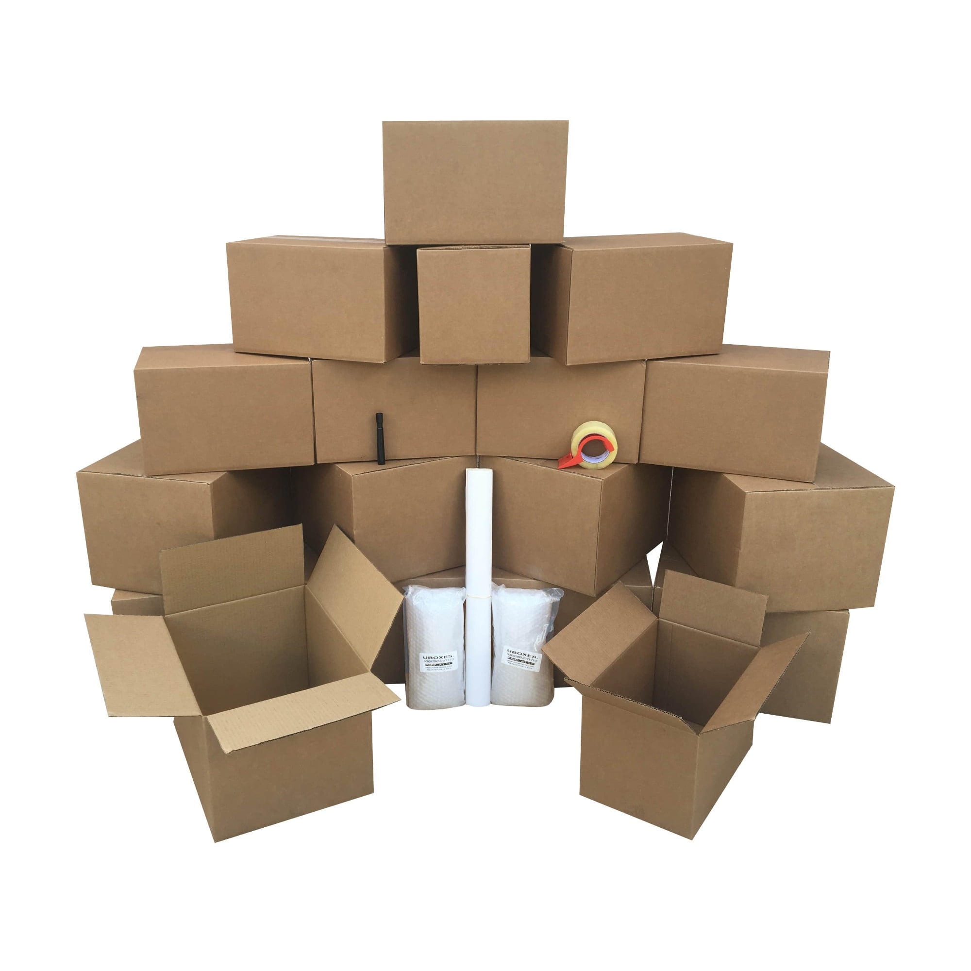 uBoxes Basic Moving Boxes Kit #1 + Supplies 18 Moving Boxes, Bubble, & Tape
