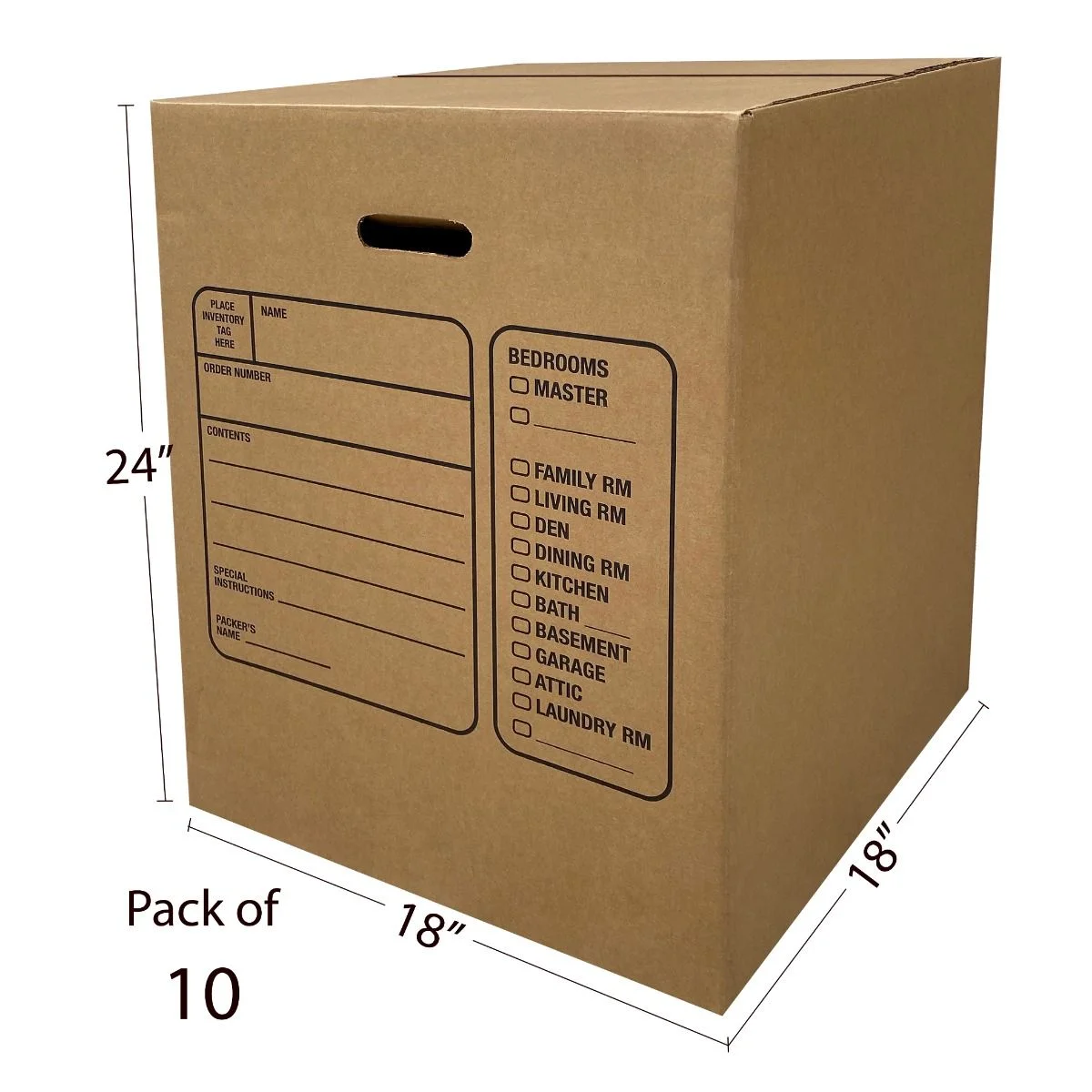 uBoxes Large Premium Moving Boxes for larger lighter items 18″ x 18″ x 24″ with space to write contents on the box or use room label stickers or tape Bundle of 10 just the right amount for moving dorm rooms, studios, or combined with other bundles of boxes Great for lampshades, clothes, toys, kitchen items, and oversize items Manufactured for moving at 32 ETC just be sure not to overload for carrying weight