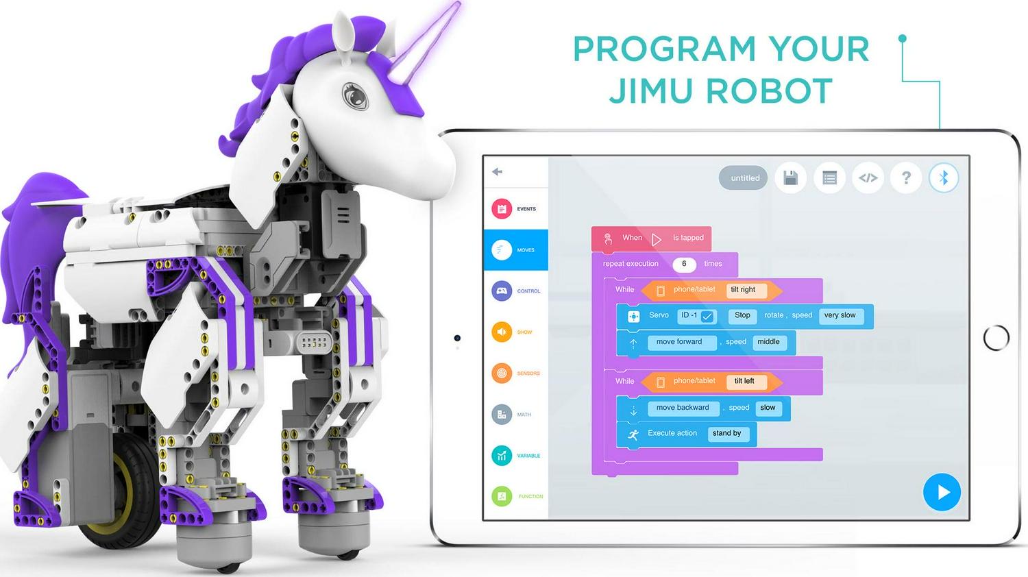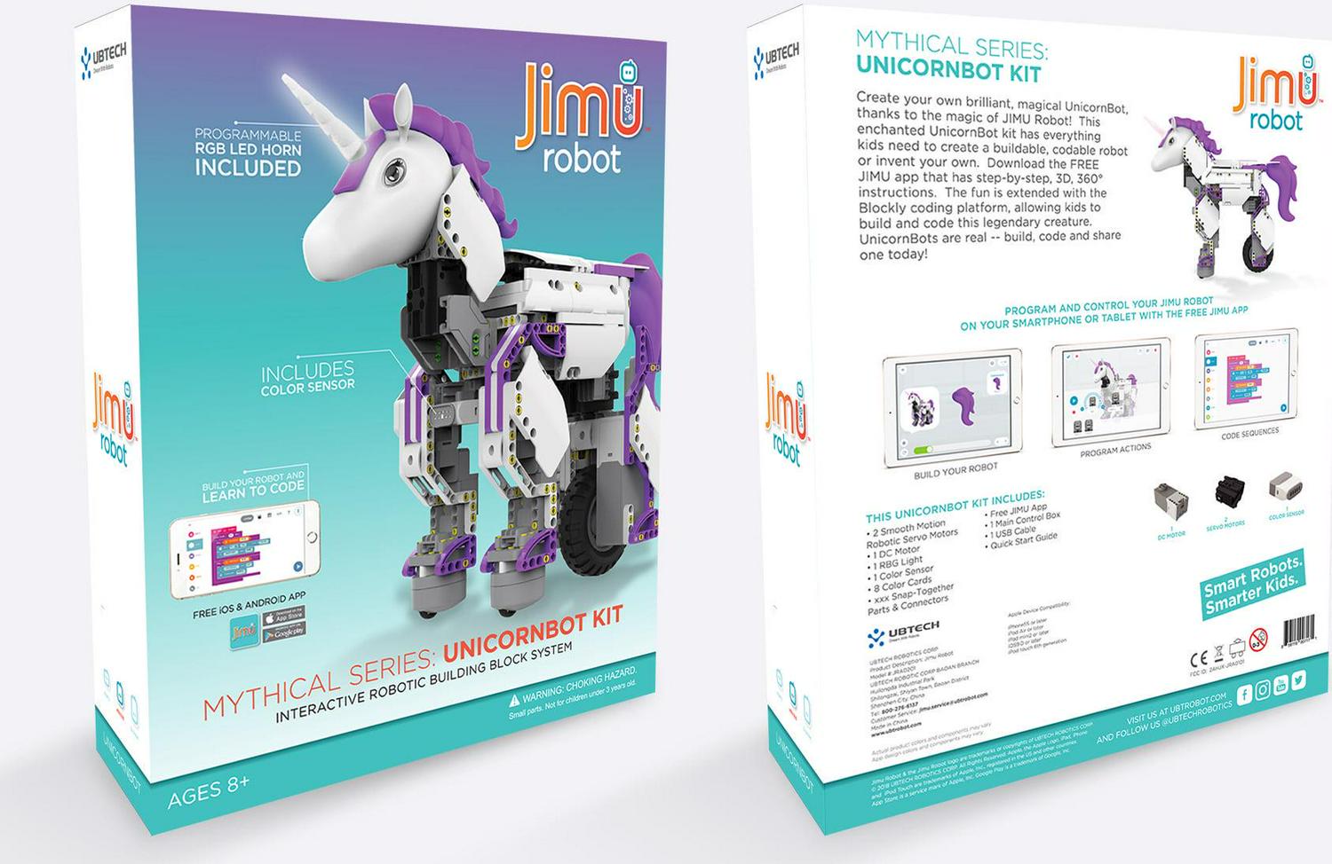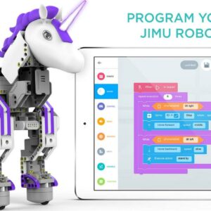 Create your own brilliant UnicornBot, thanks to the magic of JIMU Robot! This enchanted UnicornBot kit has everything needed to create a buildable, codable robot or invent your own. Download the FREE JIMU app that has step-by-step, 3D, 360° instructions. The fun is extended with the Blockly coding platform, allowing kids to build and code this legendary creature. UnicornBots are real — build, code and share one today!