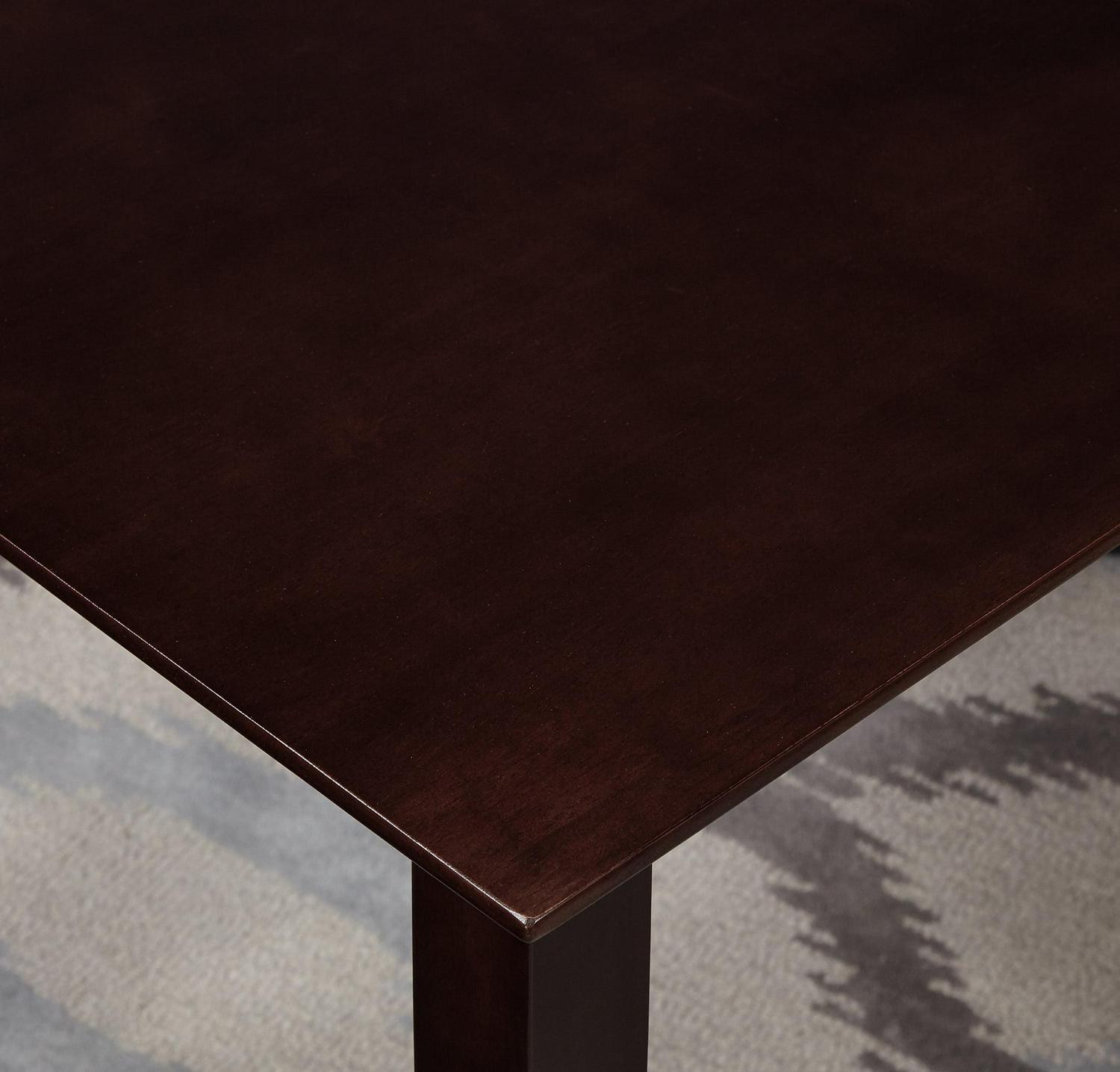 Take your home decor to the next level with this stylish Espresso Udine Table. It is constructed with a combination of MDF material and rubber wood to create a durable piece of furniture with a contemporary design. This square dining table is suitable for use in areas with limited space.