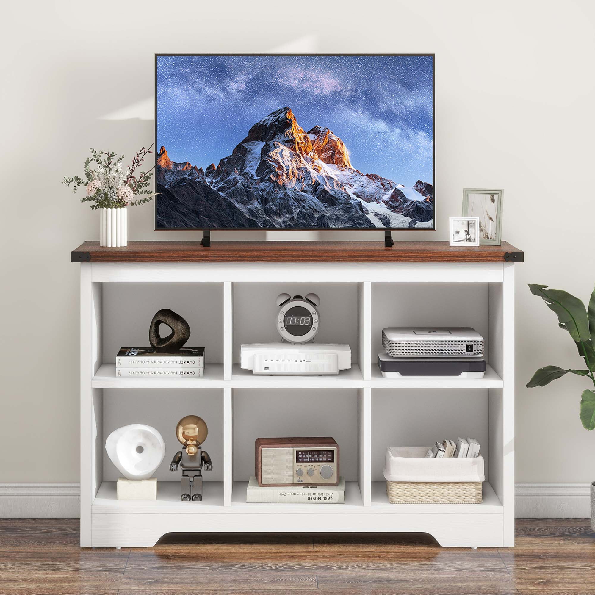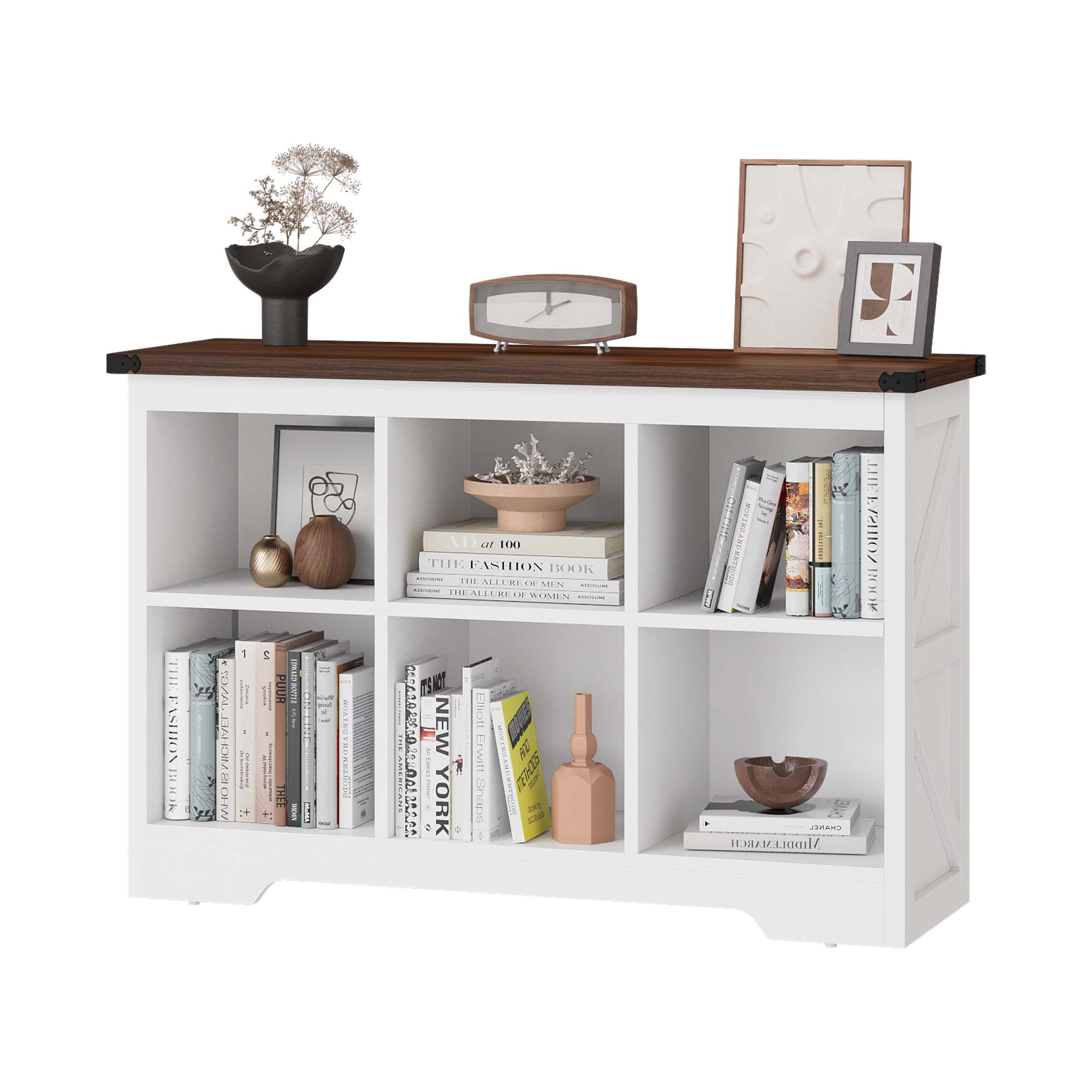 Uforic 6 Cube Organizer Bookcase, Farmhouse Cubby Bookshelf , Horizontal Open Shelf for Living Room, Bedroom, Home Office, White