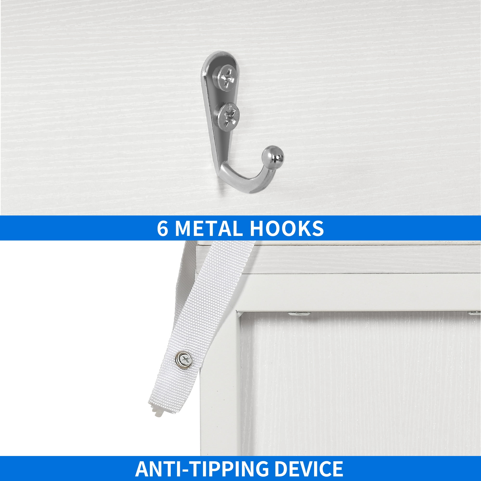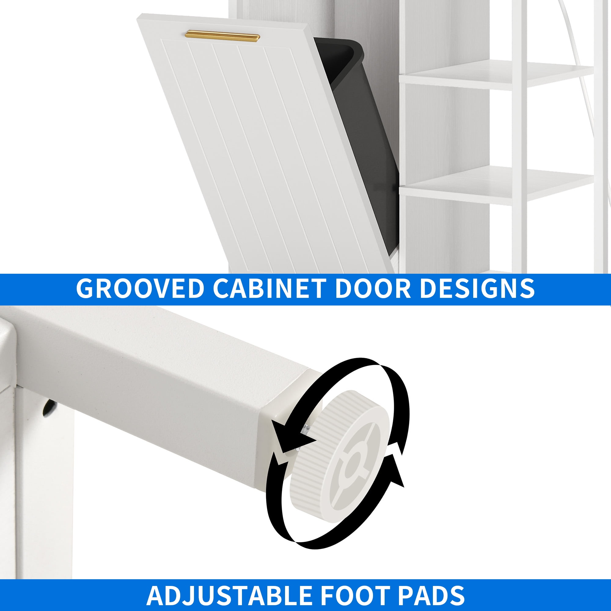 Uforic 6-Tier Kitchen Baker’s Rack with Power Outlets, 63″ Microwave Stand with Hooks & Trash Bin Cabinet, White